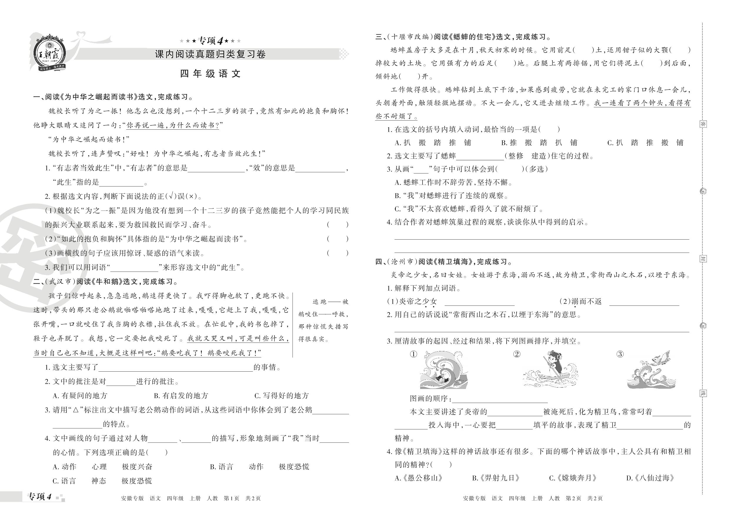 王朝霞期末专项卷——课内阅读真题归类复习卷四年级上册语文(人教版)【4】