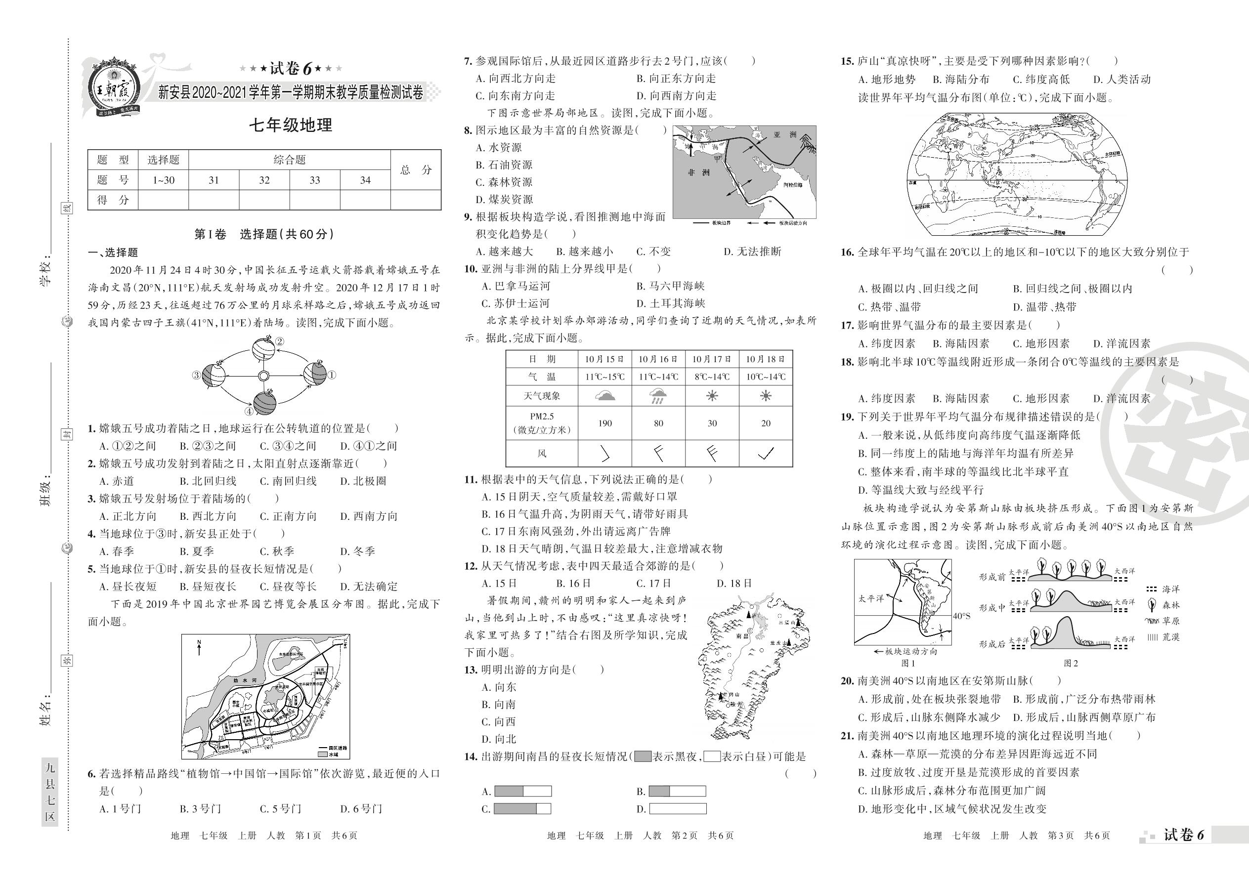 新安县2020~2021学年第一学期期末教学质量检测试卷七年级地理(人教版)【6】