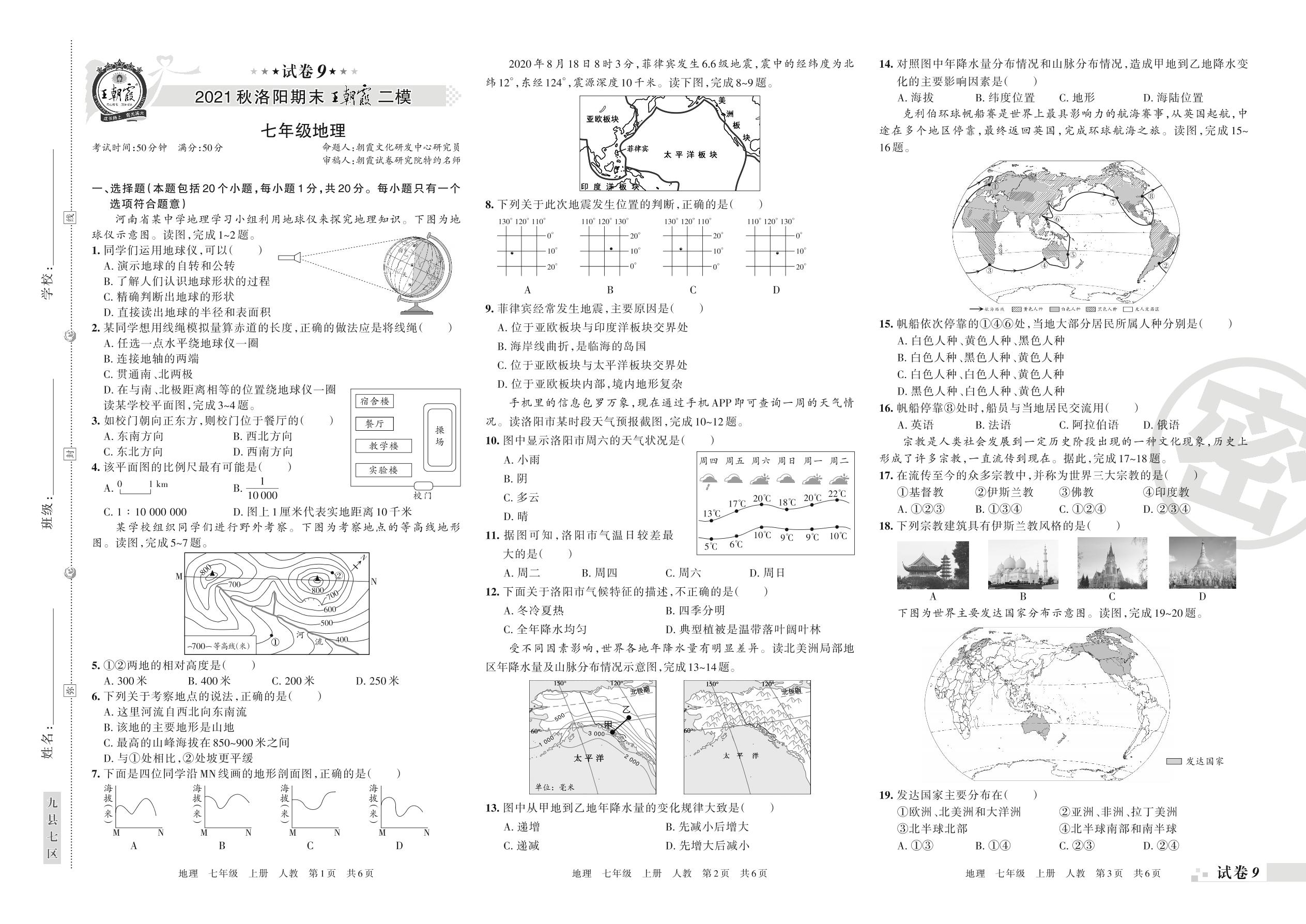 王朝霞期末模拟卷七年级上册地理(人教版)_R211223111954422【9】