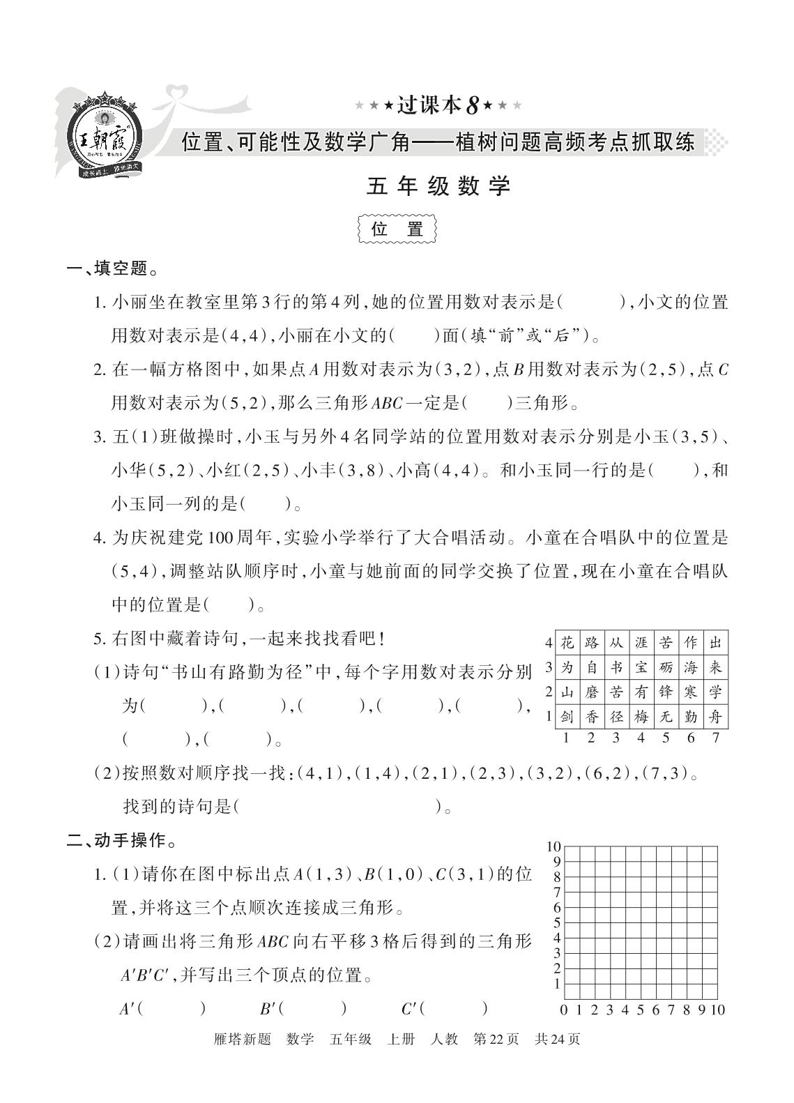 王朝霞期末过课本——位置、可能性及数学广角:植树问题高频考点抓取练五年级上册数学(人教版)【8】