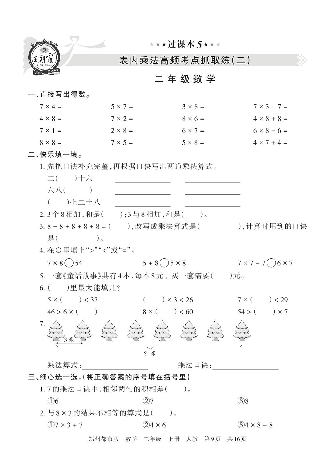 王朝霞期末过课本——表内乘法高频考点抓取练(二)二年级上册数学(人教版)_R211223112107208【5】