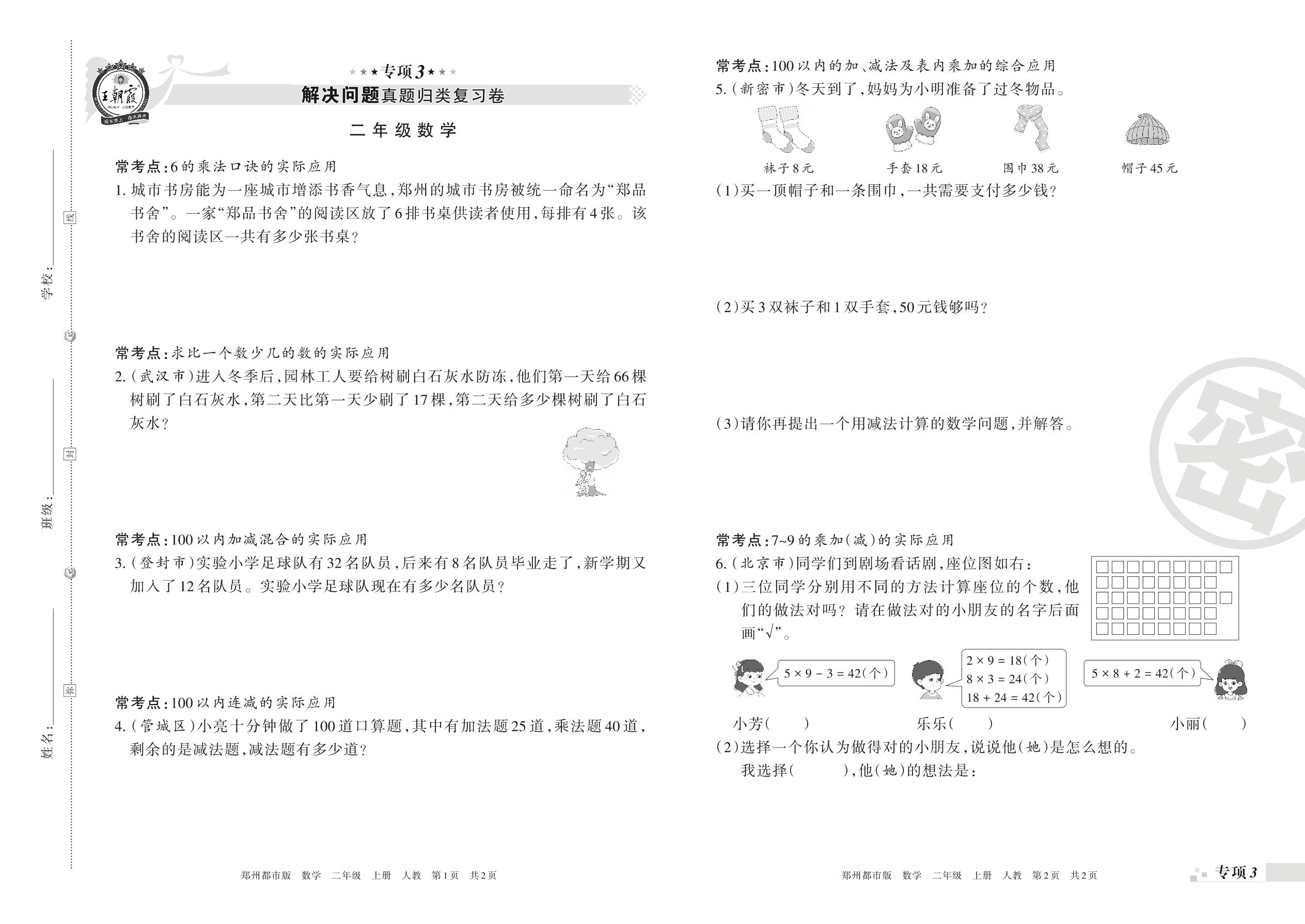 王朝霞期末专项卷——解决问题真题归类复习卷二年级上册数学(人教版)_R211223112108464【3】