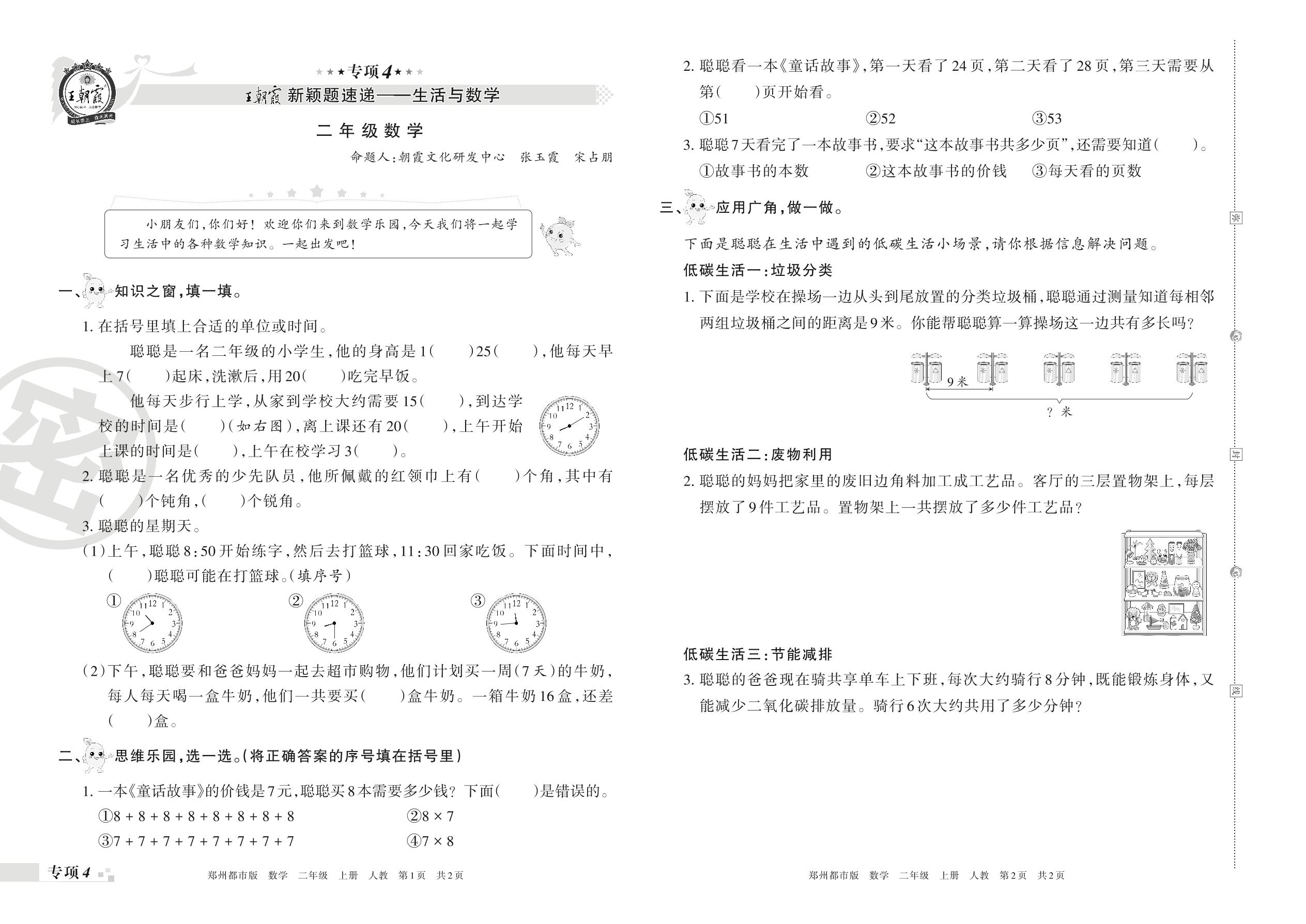 王朝霞期末专项卷——新颖题速递:生活与数学二年级上册数学(人教版)_R211223112108098【4】