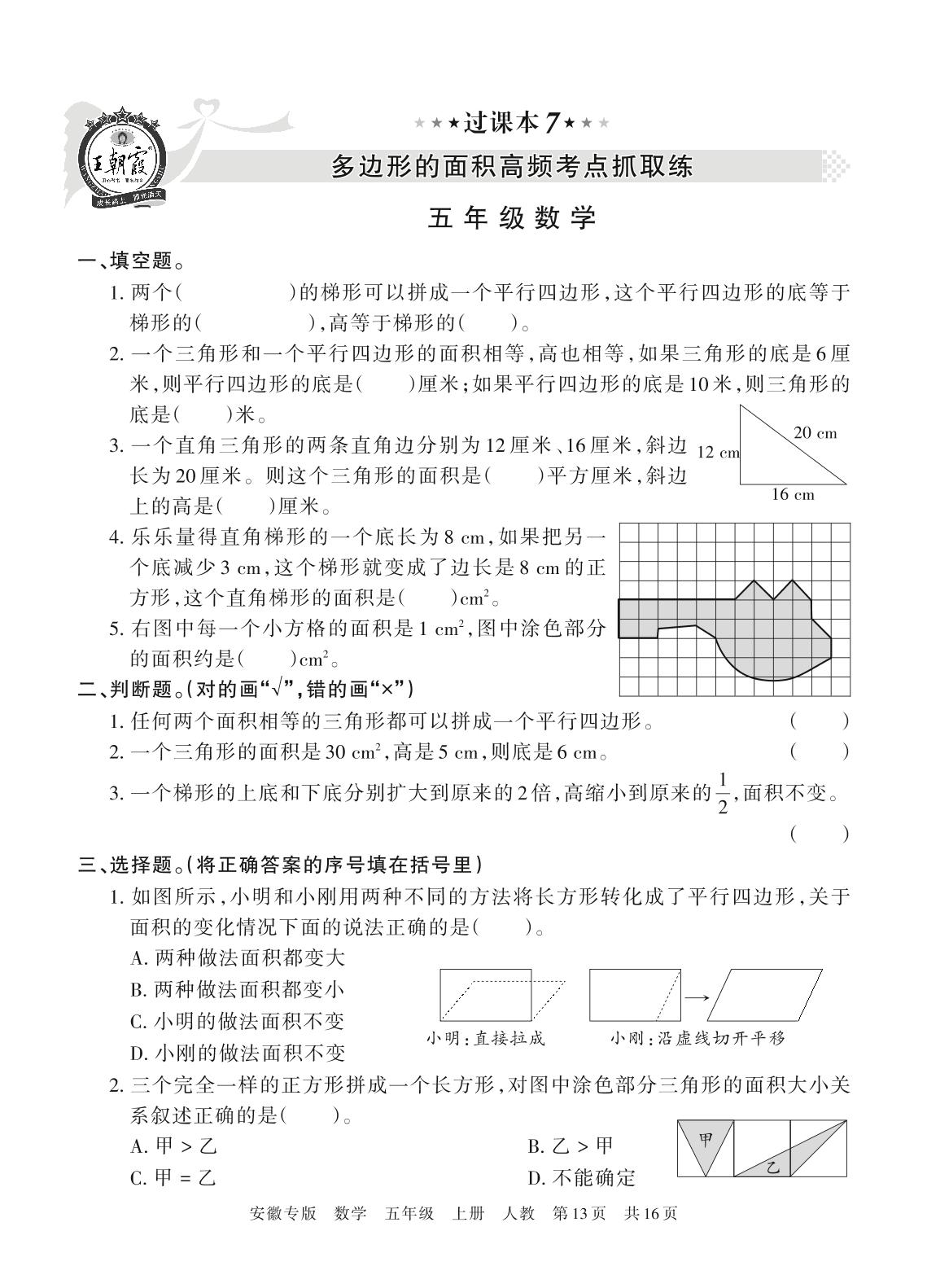 王朝霞期末过课本——多边形的面积高频考点抓取练五年级上册数学(人教版)_R211223112222210【7】