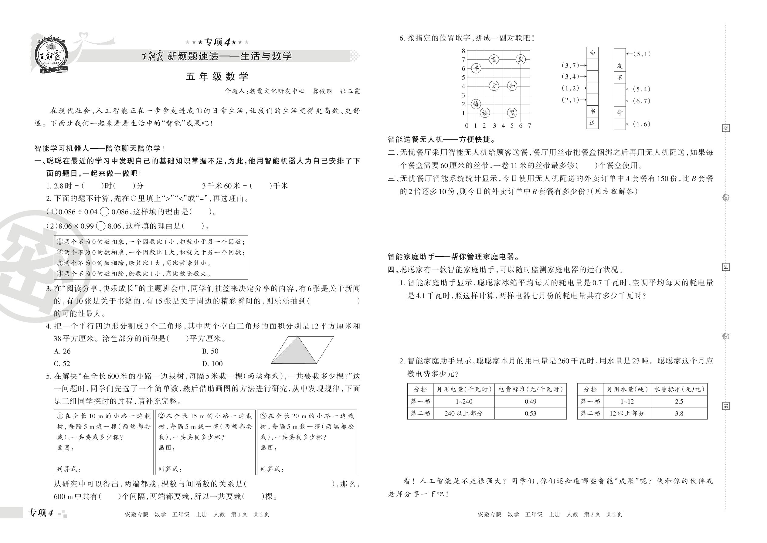 王朝霞期末专项卷——新颖题速递:生活与数学五年级上册数学(人教版)_R211223112222258【4】