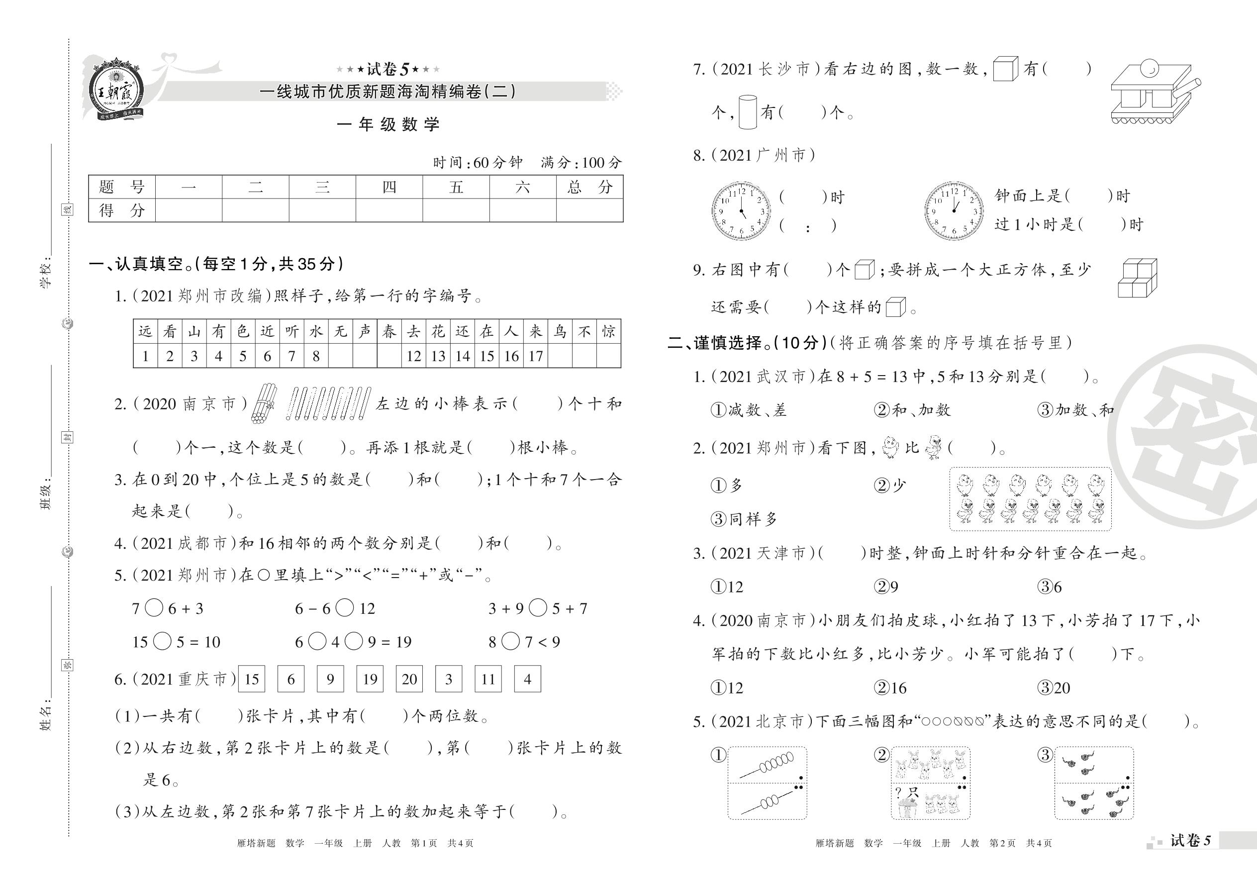 一线城市优质新题海淘精编卷(二)一年级上册数学(人教版)【5】