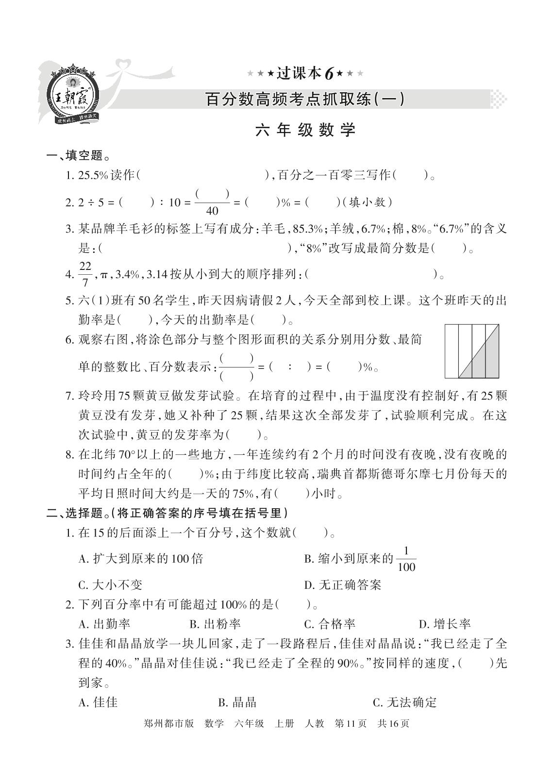王朝霞期末过课本——百分数高频考点抓取练(一)六年级上册数学(人教版)_R211223113236505【6】