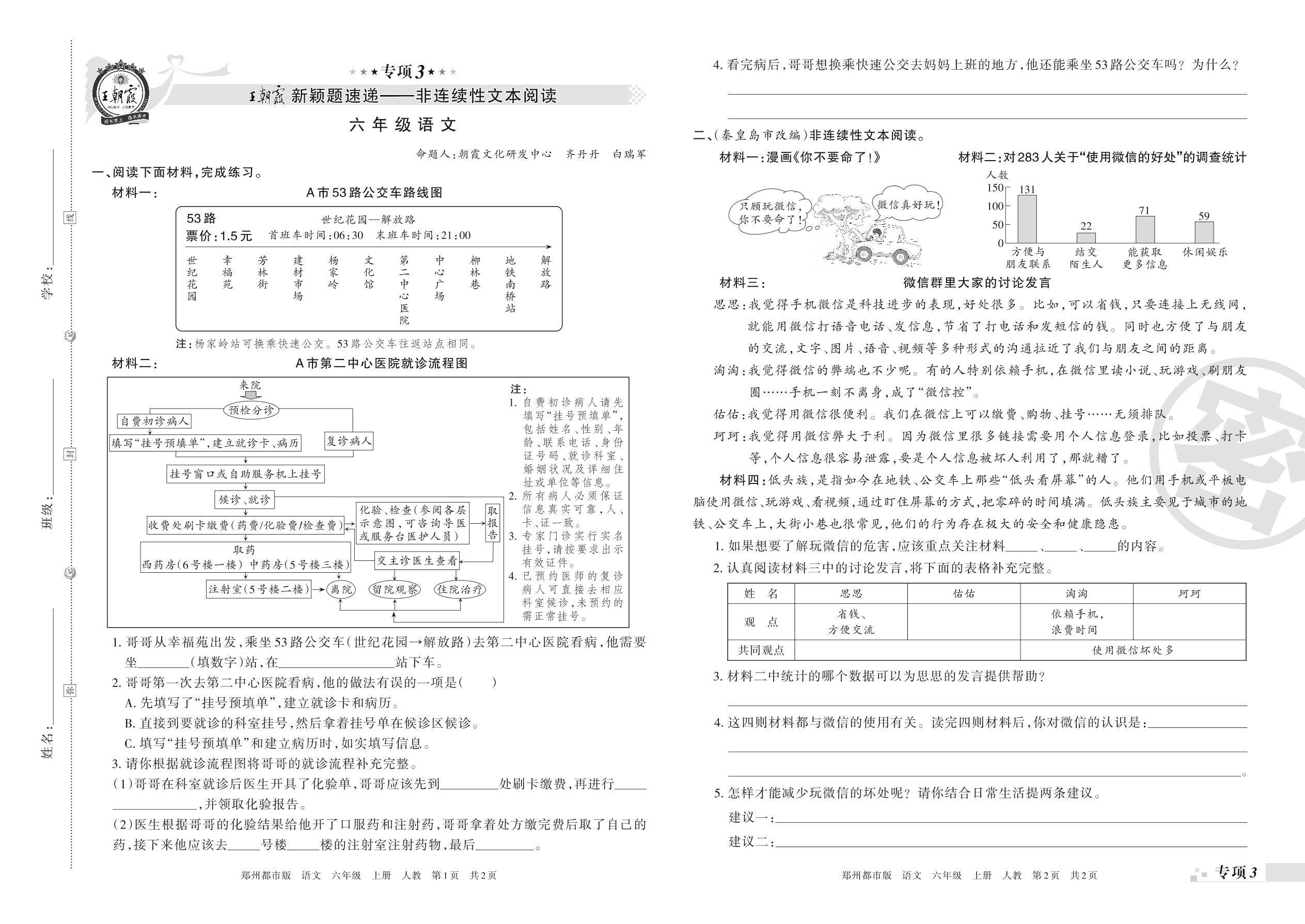王朝霞期末专项卷——新颖题速递:非连续性文本阅读六年级上册语文(人教版)_R211223113640391【3】
