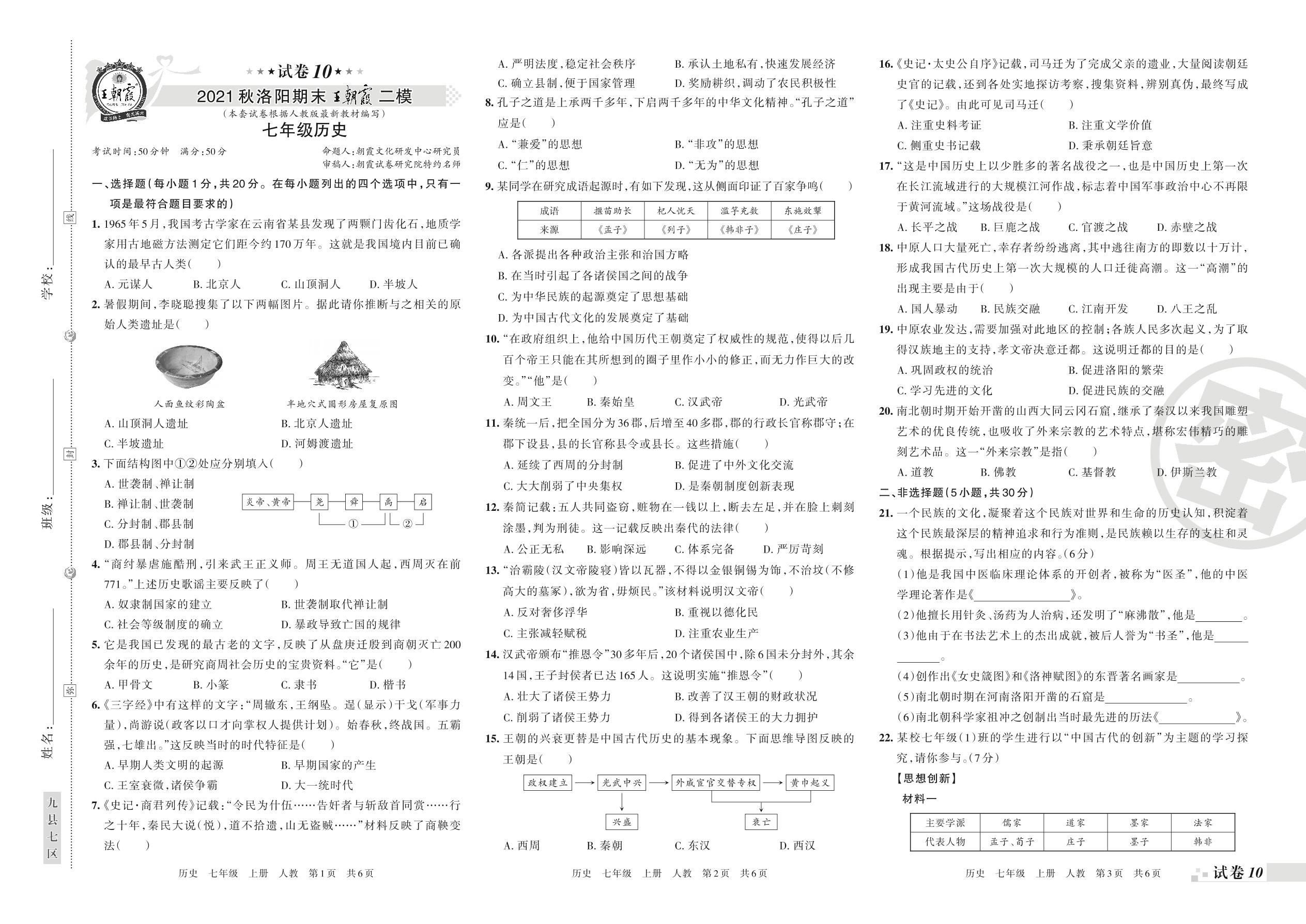 王朝霞期末模拟卷七年级上册历史(人教版)【10】