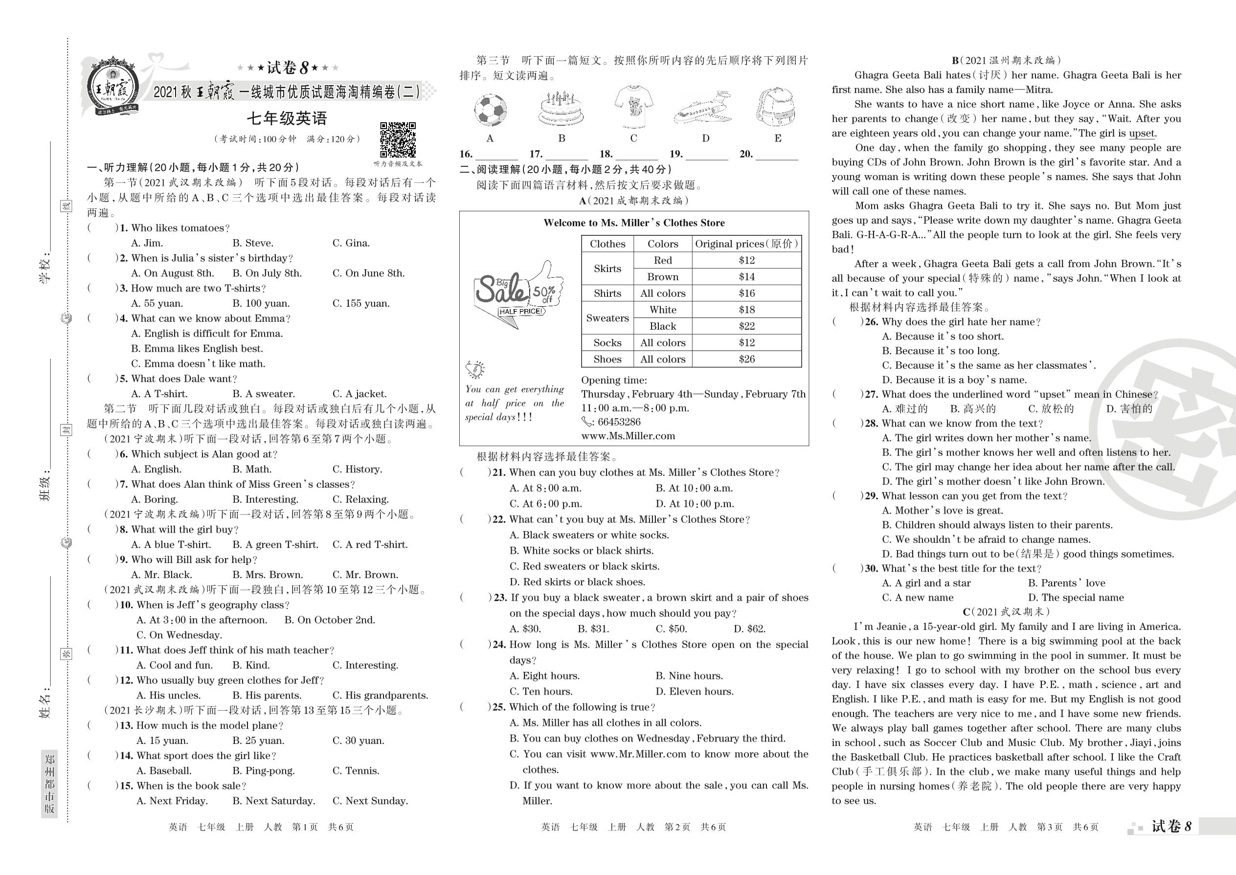 一线城市优质试题海淘精编卷(二)七年级上册英语(人教版)【8】