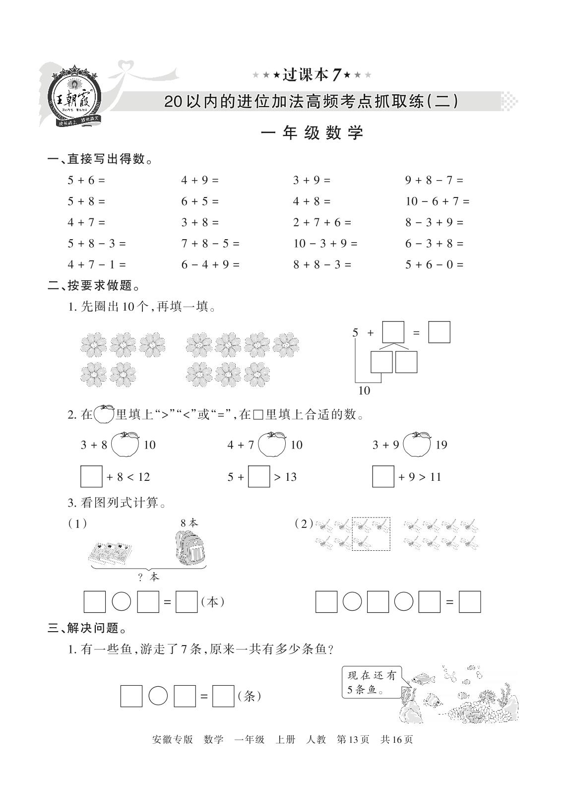 王朝霞期末过课本——20以内的进位加法高频考点抓取练(二)一年级上册数学(人教版)_R211223114742766【7】
