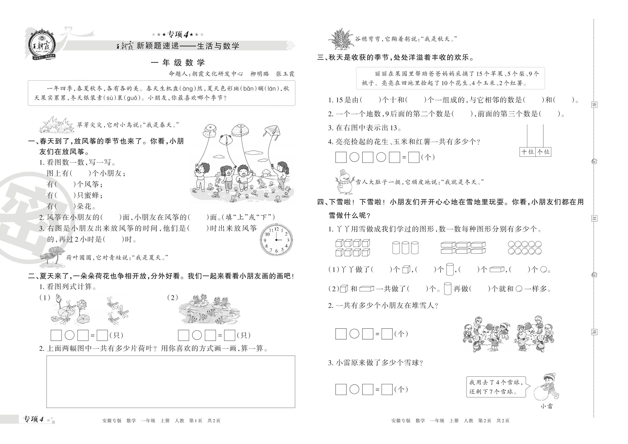 王朝霞期末专项卷——新颖题速递:生活与数学一年级上册数学(人教版)_R211223114742392【4】