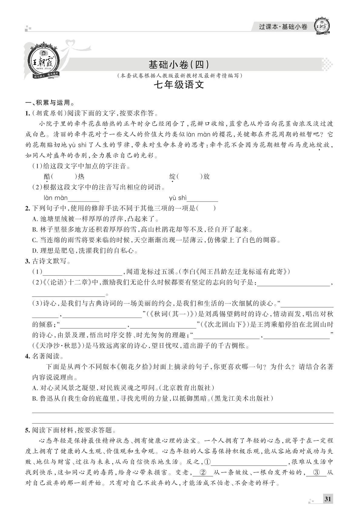 王朝霞期末过课本——基础小卷(四)七年级上册语文(人教版)【10】