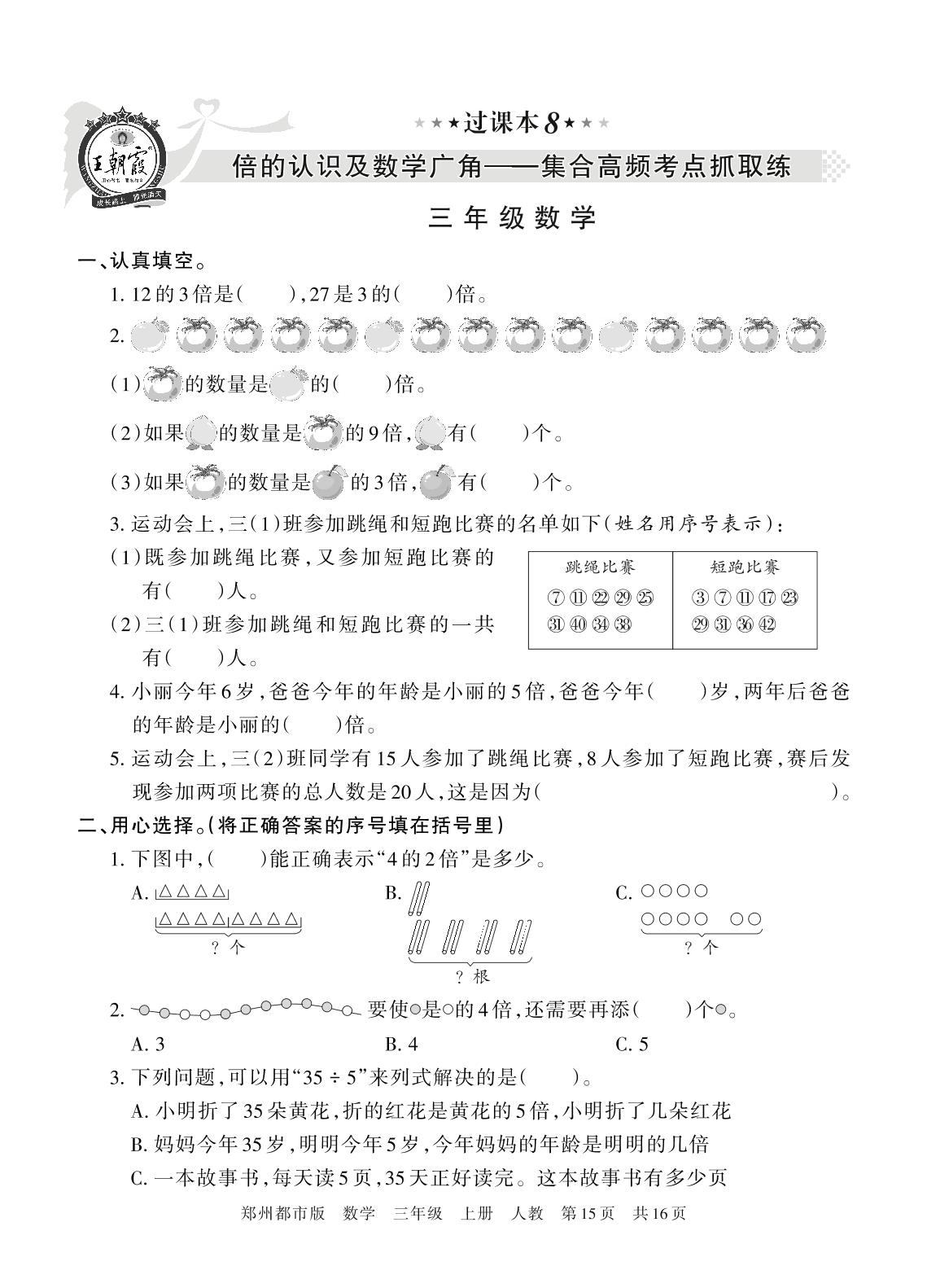王朝霞期末过课本——倍的认识及数学广角:集合高频考点抓取练三年级上册数学(人教版)_R211223115240834【8】