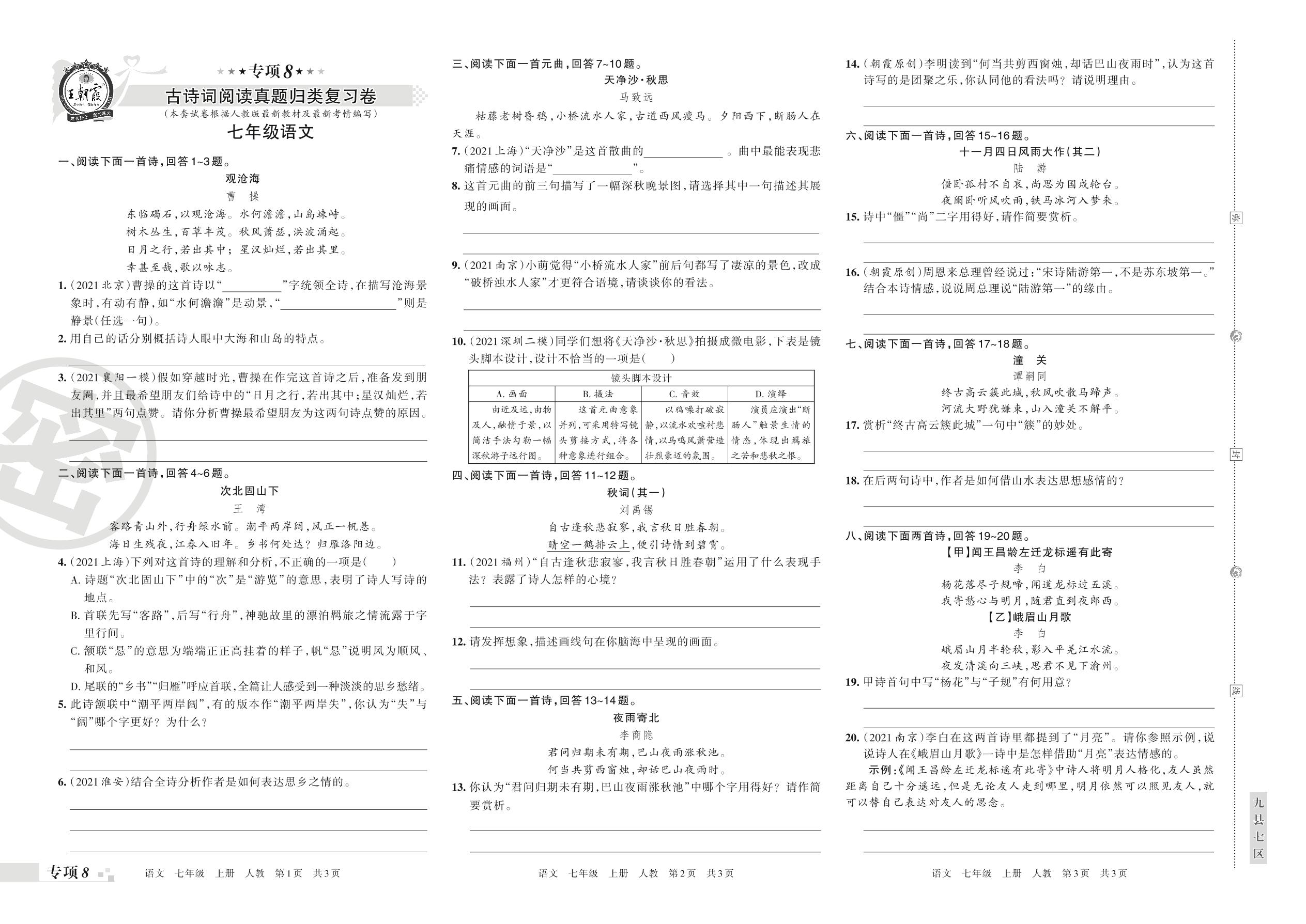 王朝霞期末专项卷——古诗词阅读真题归类复习卷七年级上册语文(人教版)_R211223115558227【8】