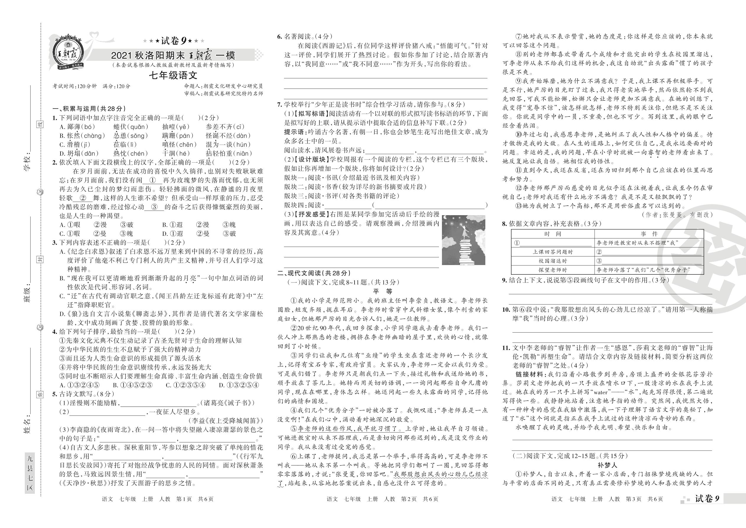 王朝霞期末模拟卷七年级上册语文(人教版)_R211223115558345【9】