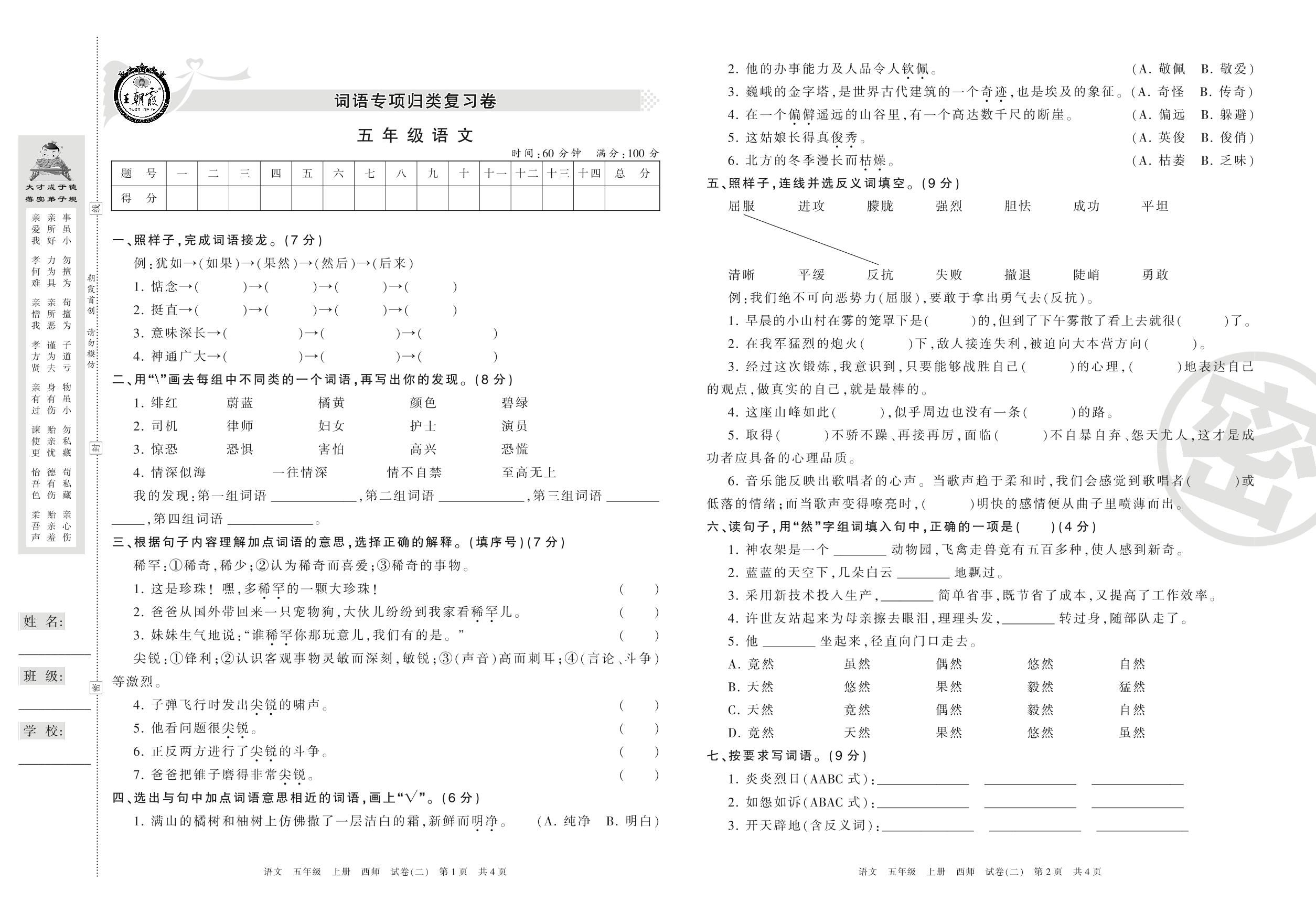 王朝霞期末专项卷五年级上册语文(西师版)_R210801213647【2】