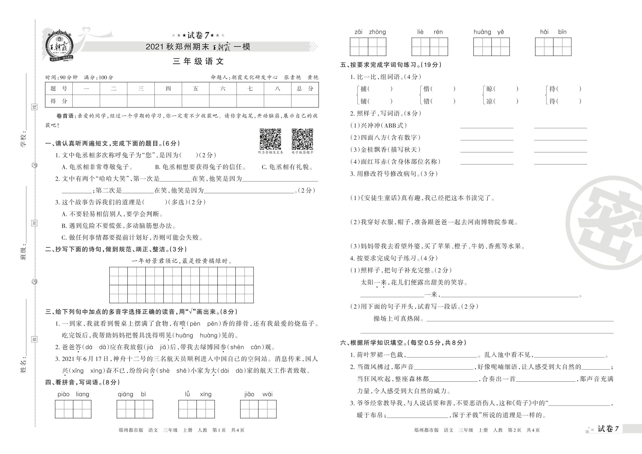 王朝霞期末模拟卷三年级上册语文(人教版)_R211223115718824【7】