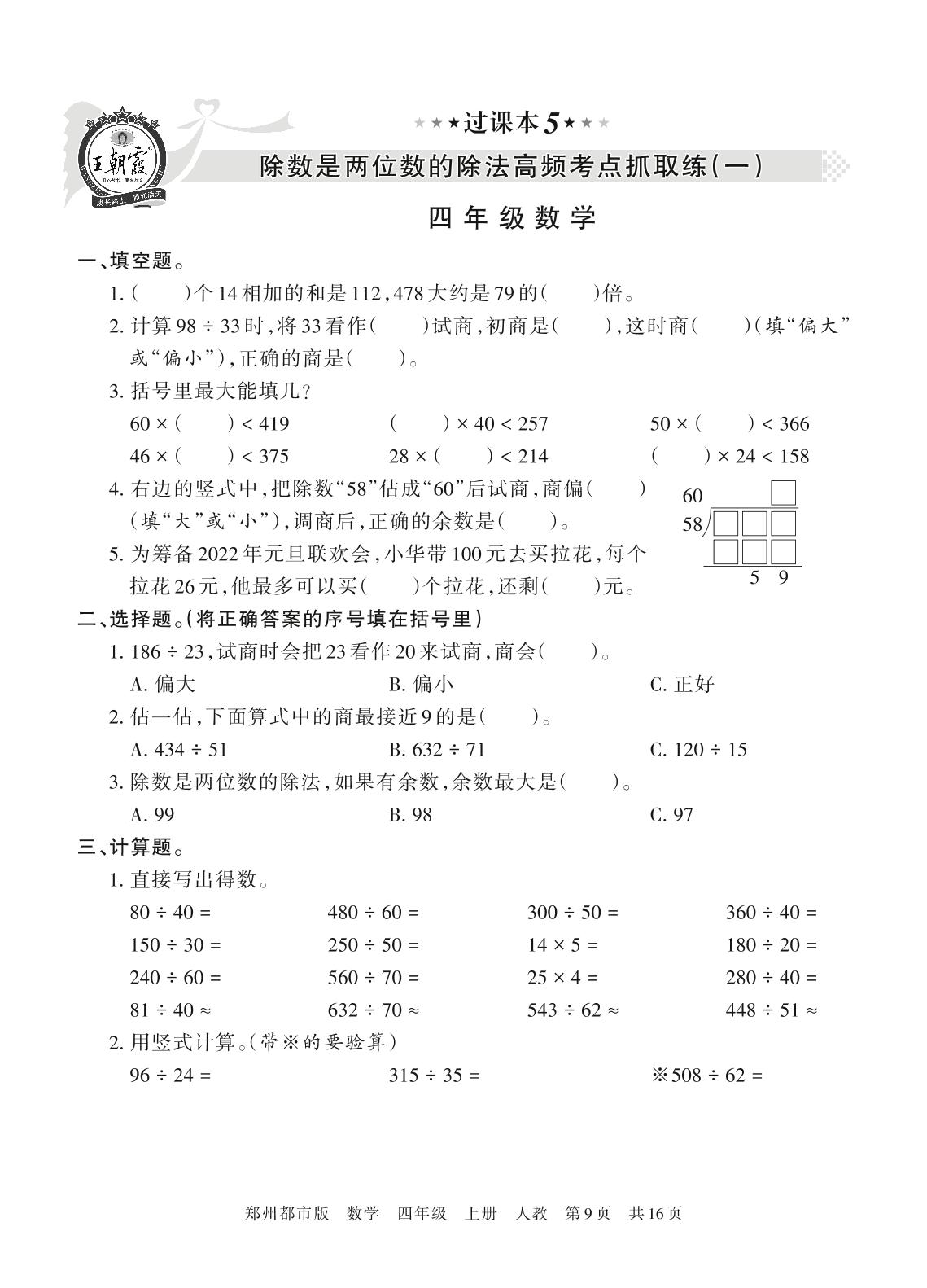 王朝霞期末过课本——除数是两位数的除法高频考点抓取练(一)四年级上册数学(人教版)_R211223120117192【5】