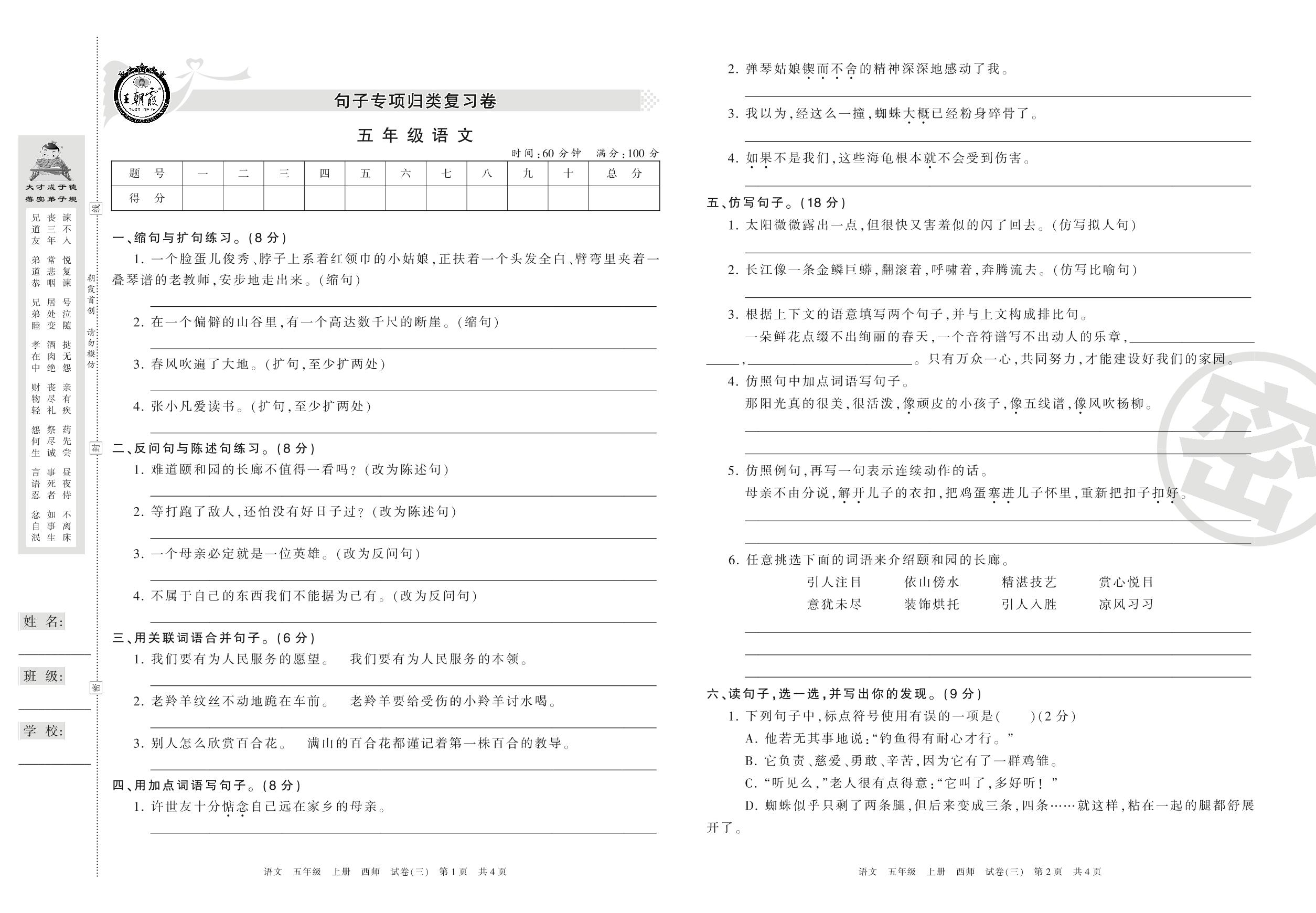 王朝霞期末专项卷五年级上册语文(西师版)_R210801213653【3】