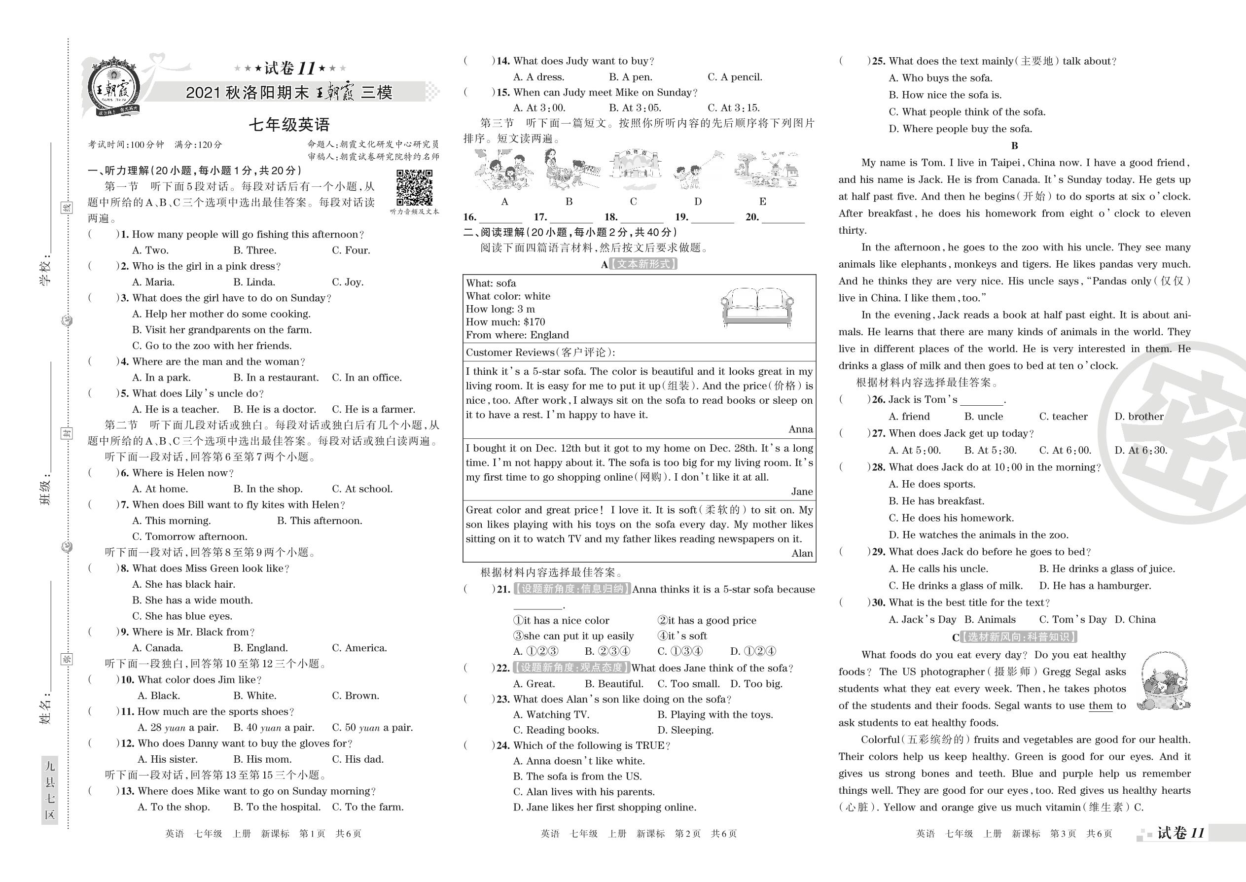 王朝霞期末模拟卷七年级上册英语(新课标版)【11】