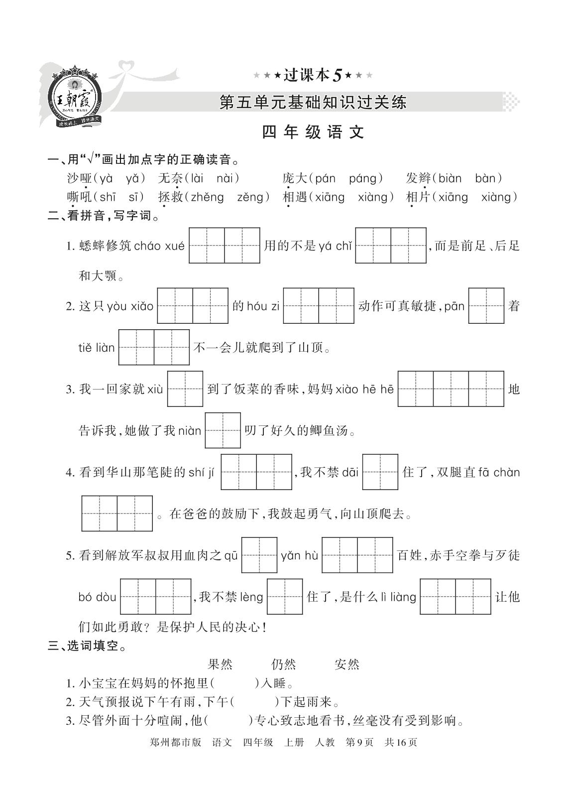 王朝霞期末过课本——第五单元基础知识过关练四年级上册语文(人教版)_R211223134802494【5】