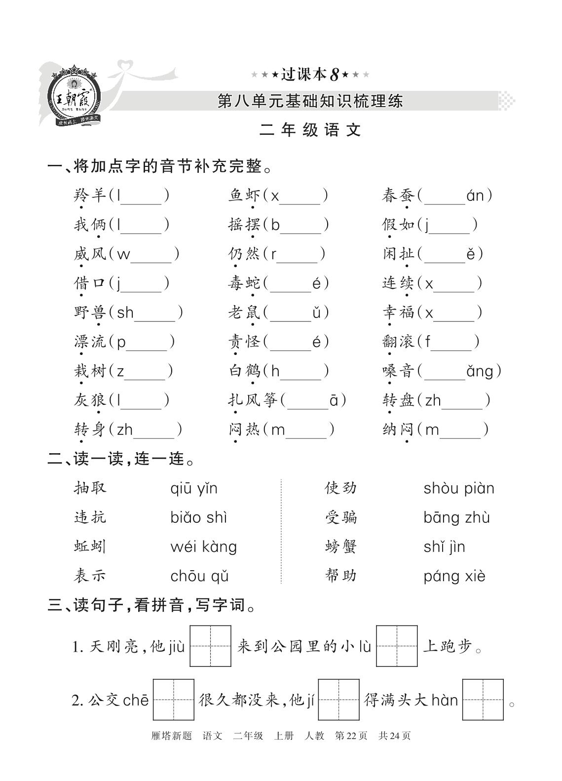 王朝霞期末过课本——第八单元基础知识梳理练二年级上册语文(人教版)_R211223134940459【8】