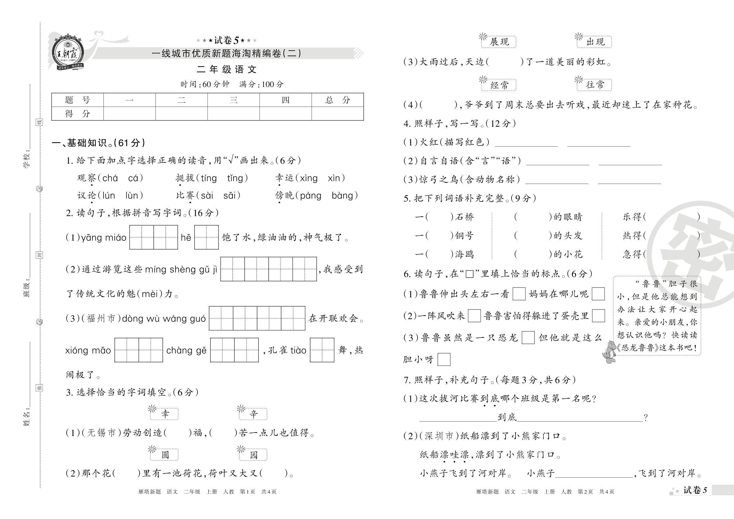 一线城市优质新题海淘精编卷(二)二年级上册语文(人教版)【5】