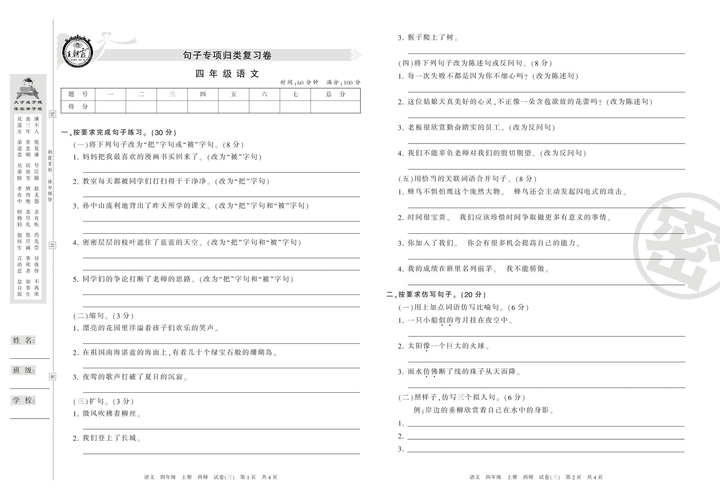 四年级语文西师版上册专项卷