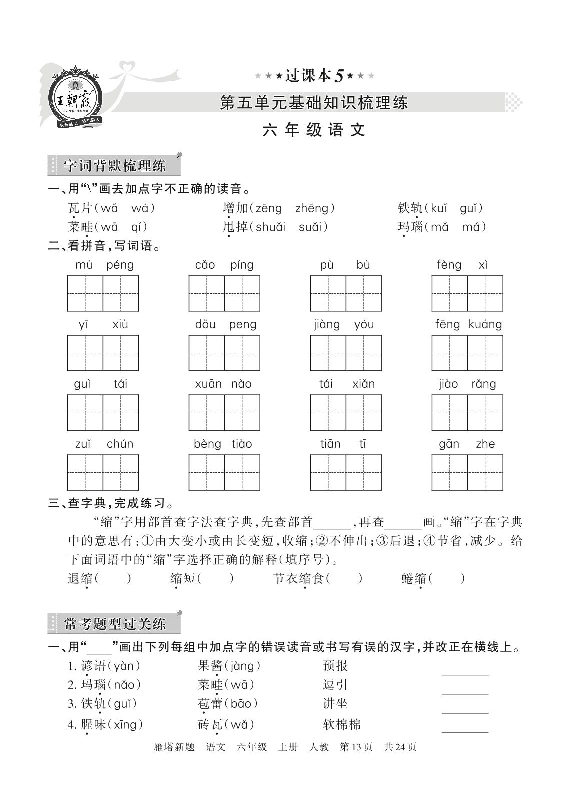王朝霞期末过课本——第五单元基础知识梳理练六年级上册语文(人教版)_R211223135354483【5】