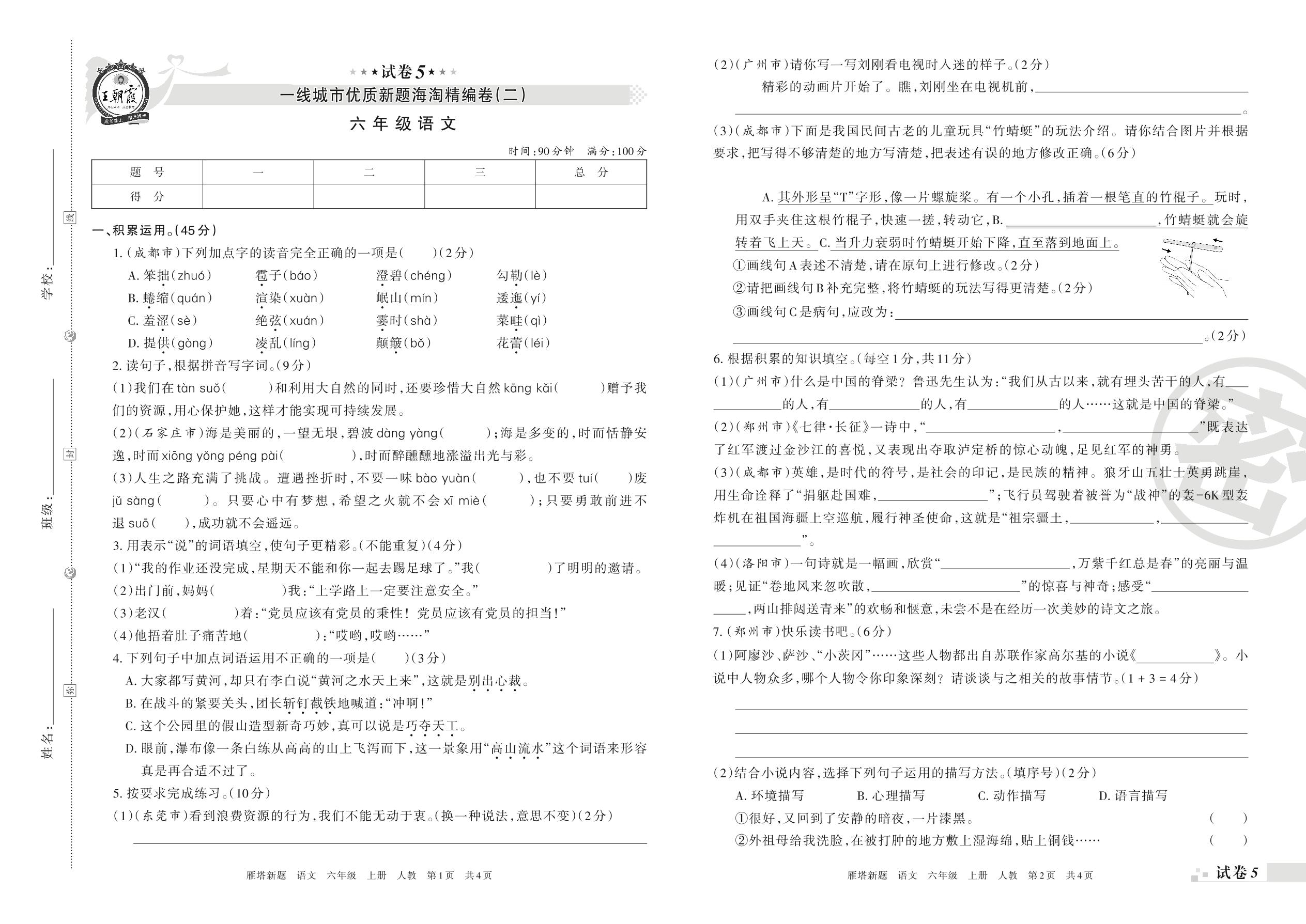 一线城市优质新题海淘精编卷(二)六年级上册语文(人教版)【5】