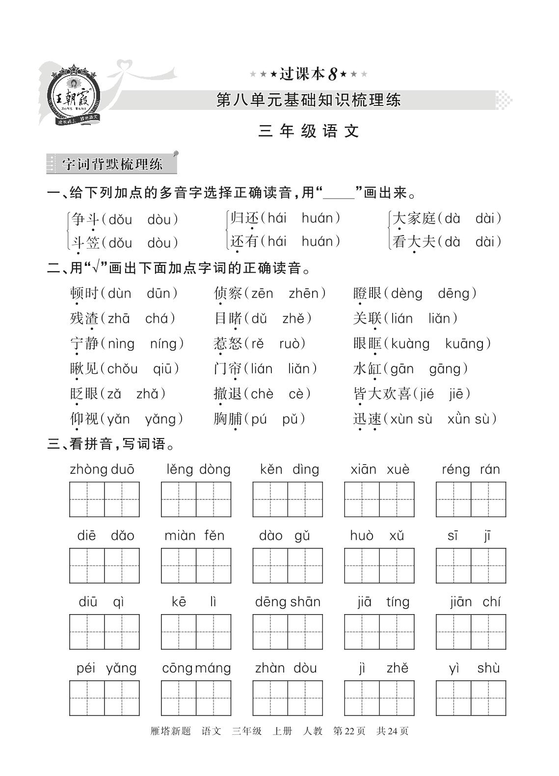 王朝霞期末过课本——第八单元基础知识梳理练三年级上册语文(人教版)_R211223135826657【8】