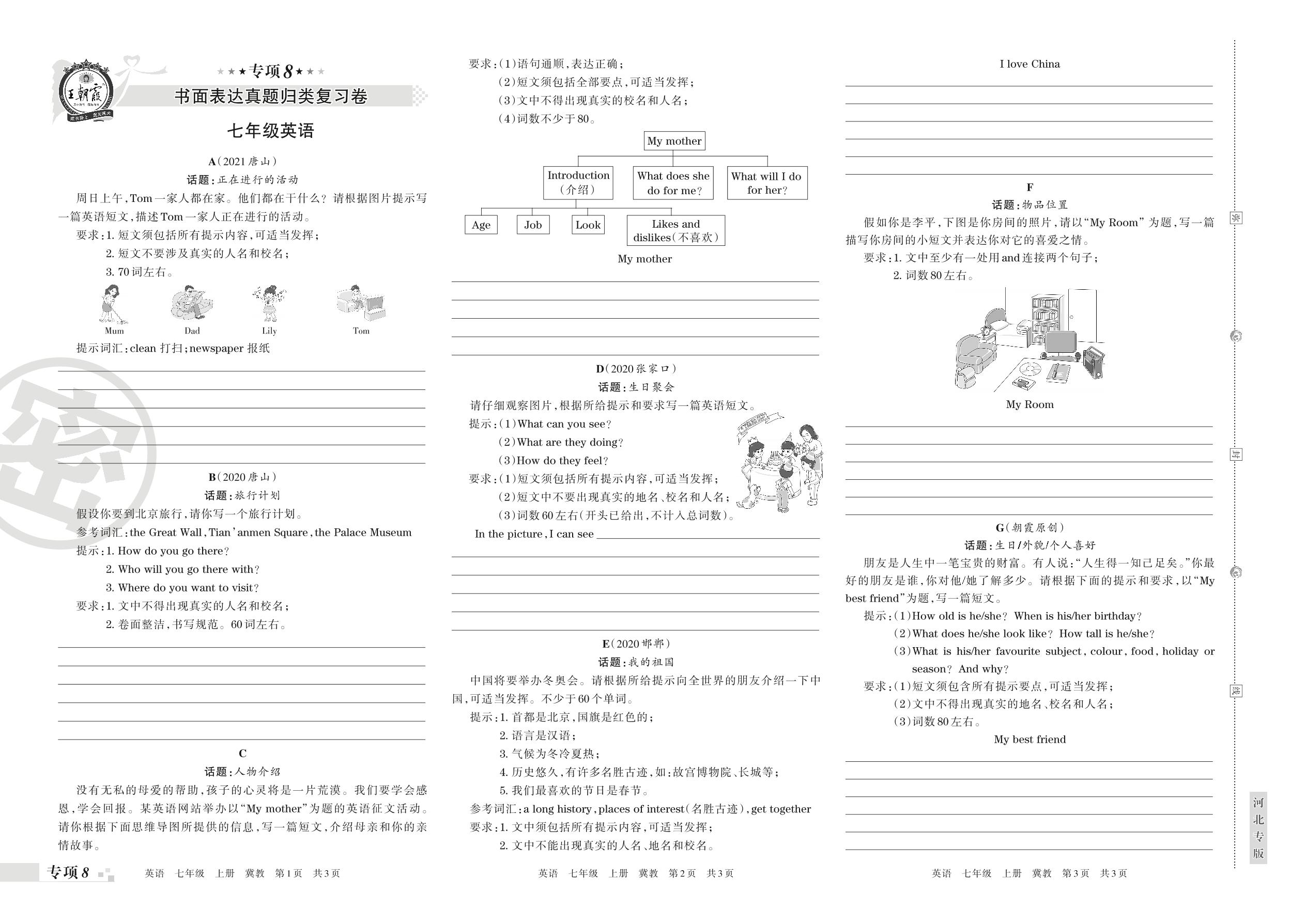 王朝霞期末专项卷——书面表达真题归类复习卷七年级上册英语(冀教版)【8】