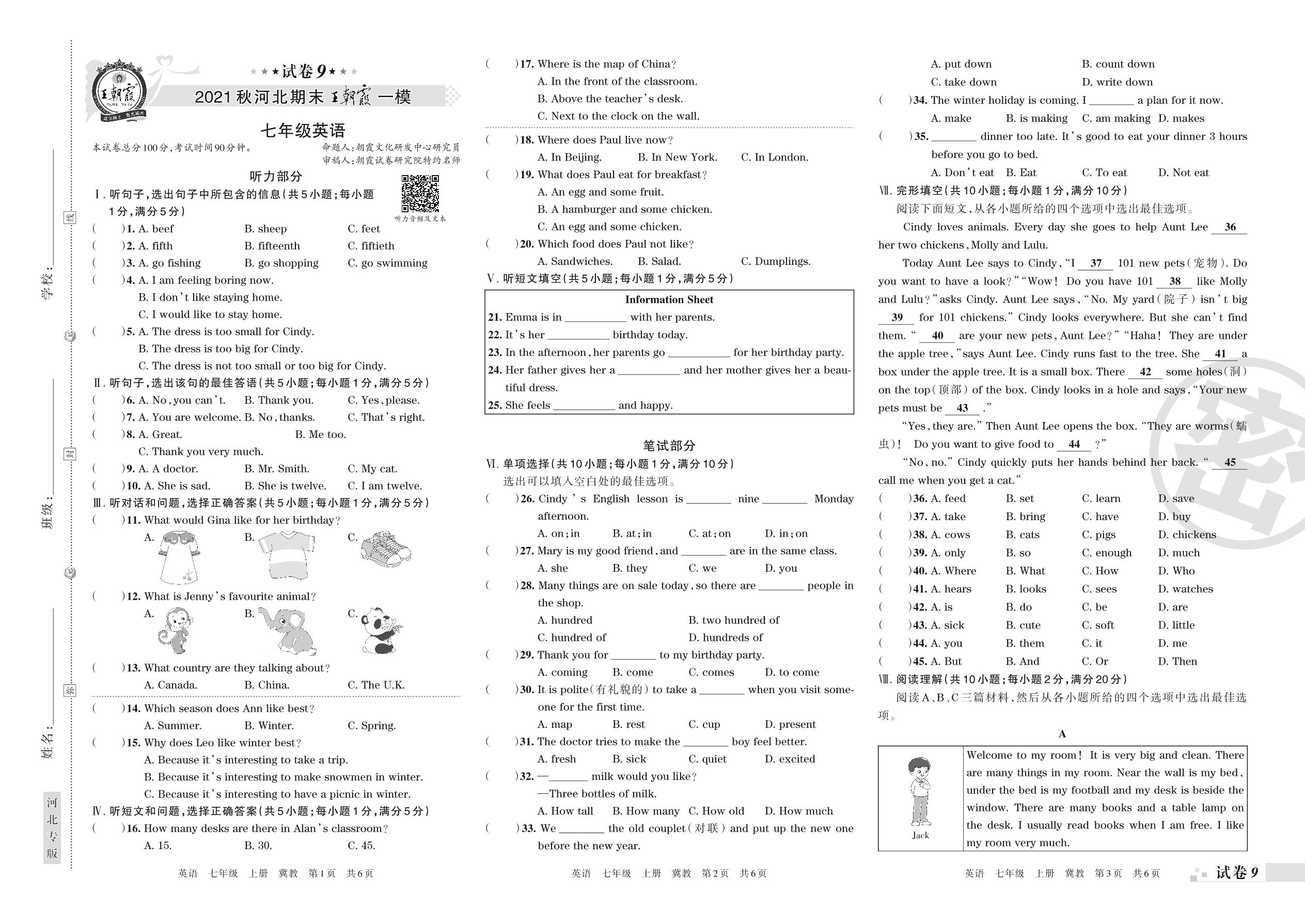 王朝霞期末模拟卷七年级上册英语(冀教版)_R211223140333475【9】