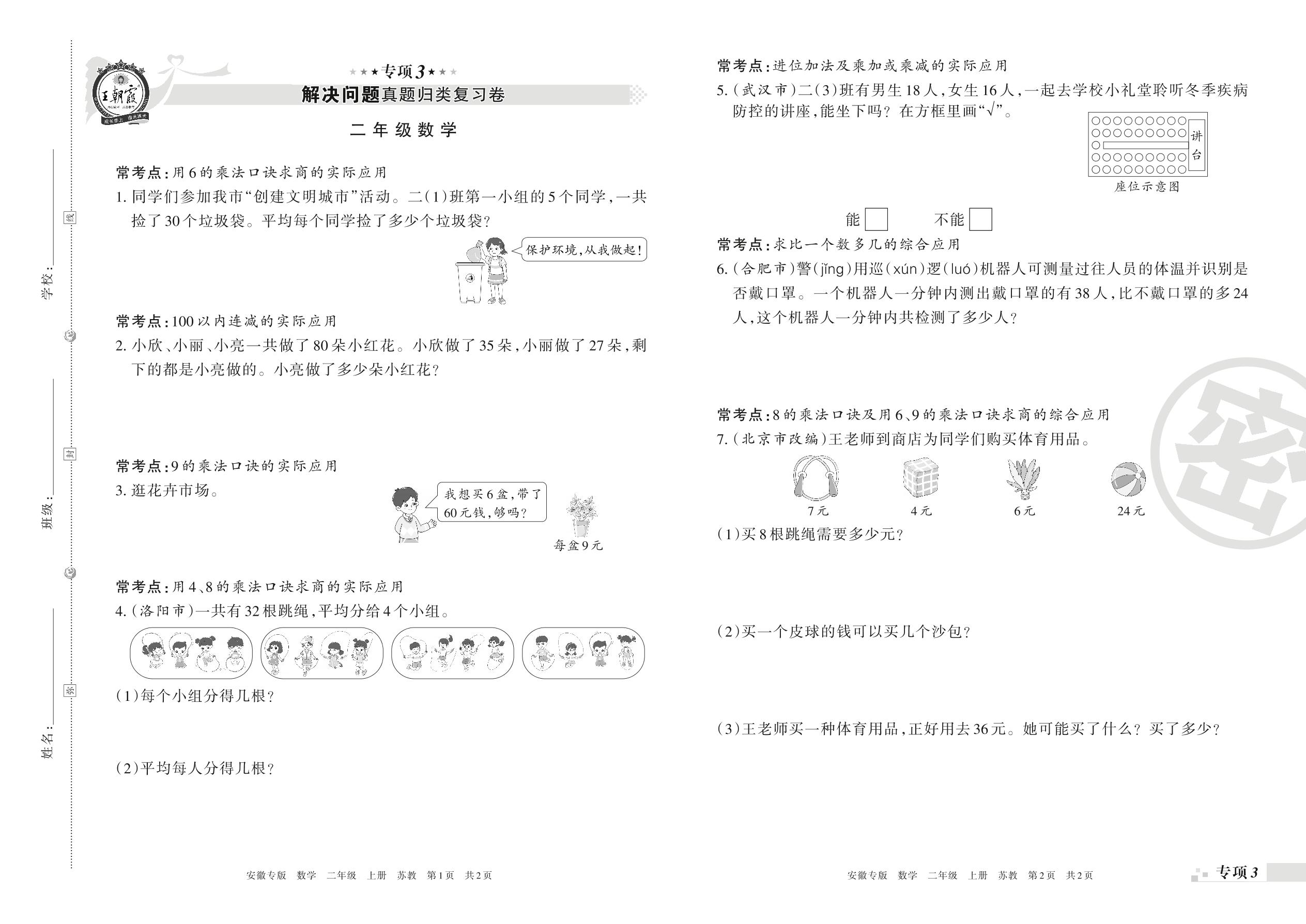 王朝霞期末专项卷——解决问题真题归类复习二年级上册数学(苏教版)【3】