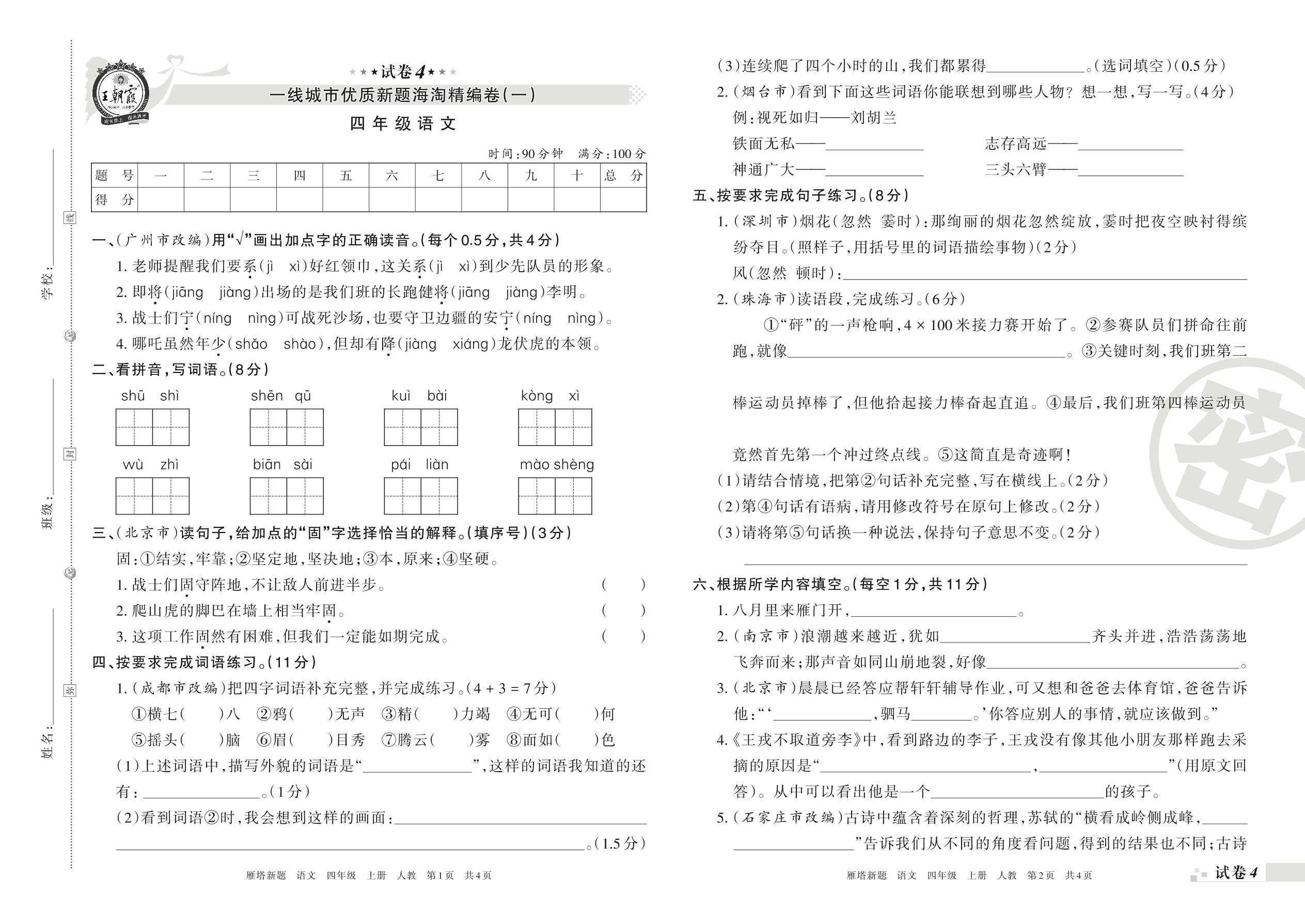 一线城市优质新题海淘精编卷(一)四年级上册语文(人教版)【4】