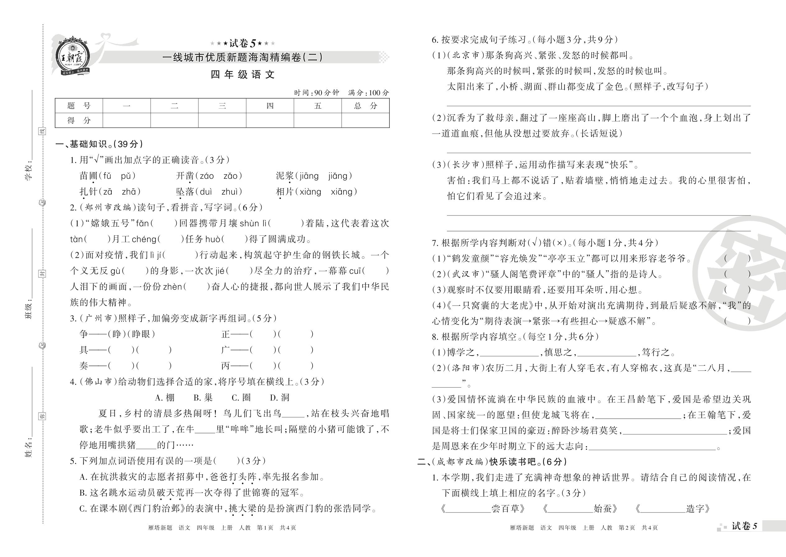 一线城市优质新题海淘精编卷(二)四年级上册语文(人教版)【5】
