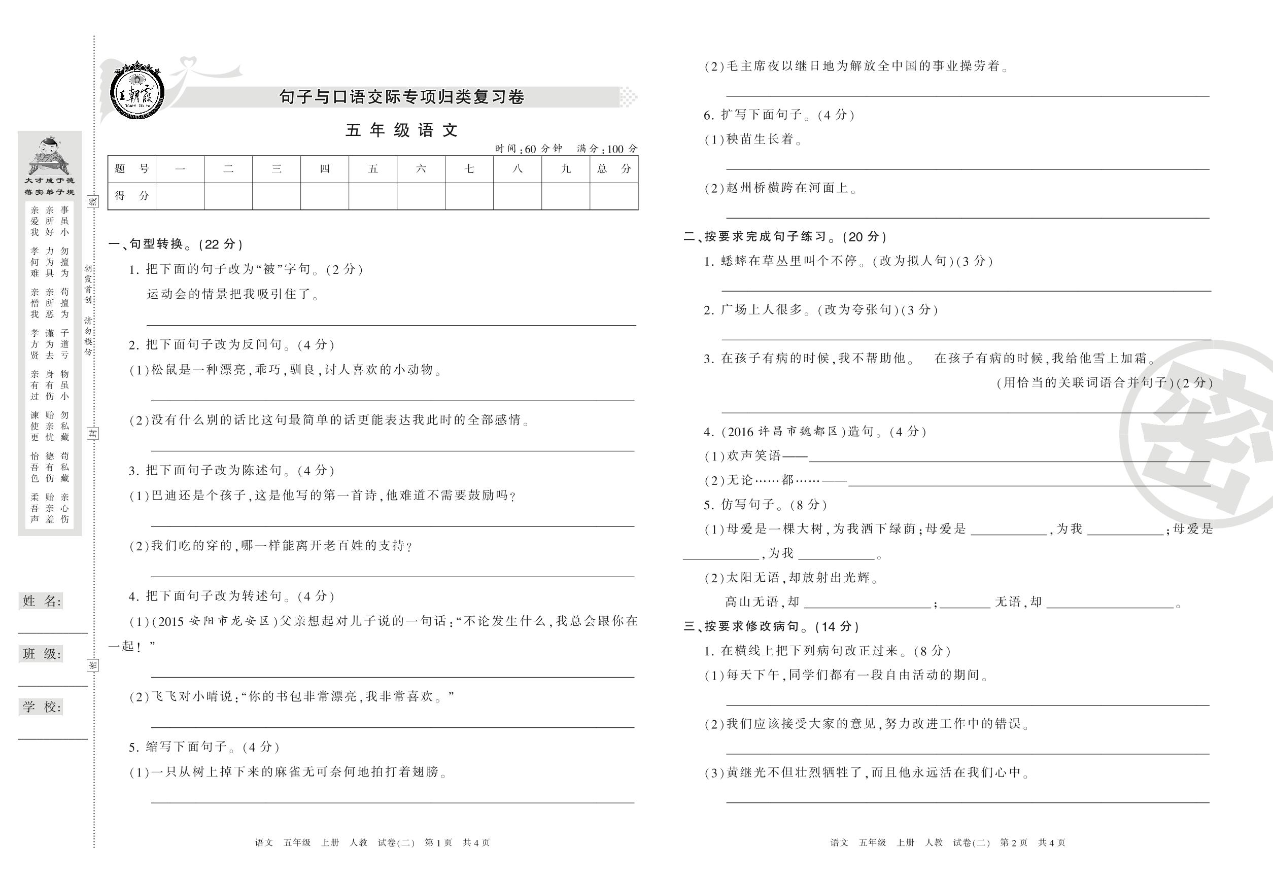 王朝霞期末专项卷五年级上册语文(人教版)_R210801213844【2】