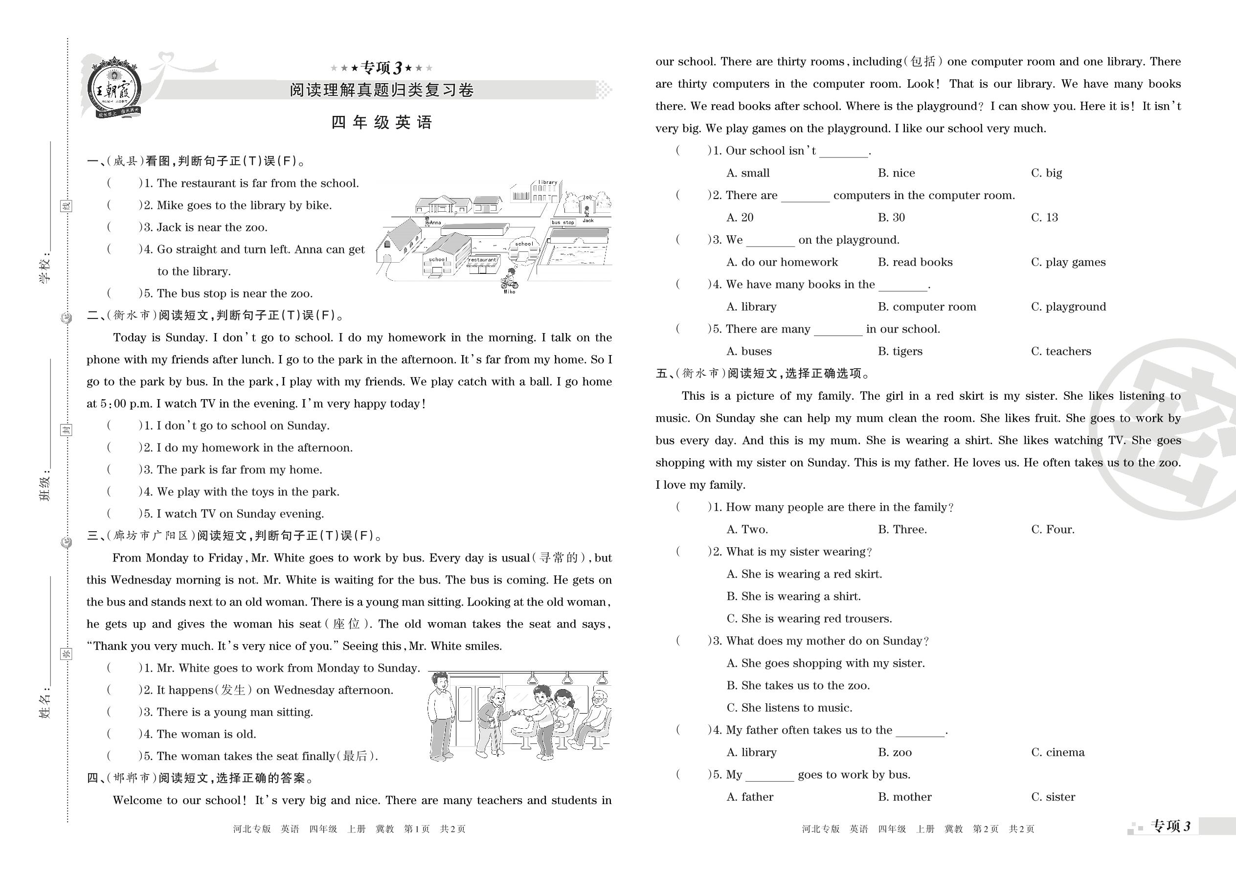 王朝霞期末专项卷——阅读理解真题归类复习卷四年级上册英语(冀教版)【3】