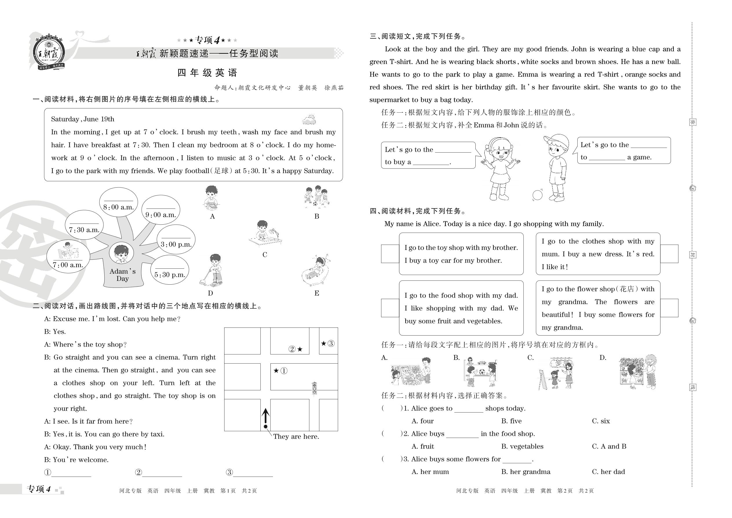 王朝霞期末专项卷——新颖题速递:任务型阅读四年级上册英语(冀教版)【4】