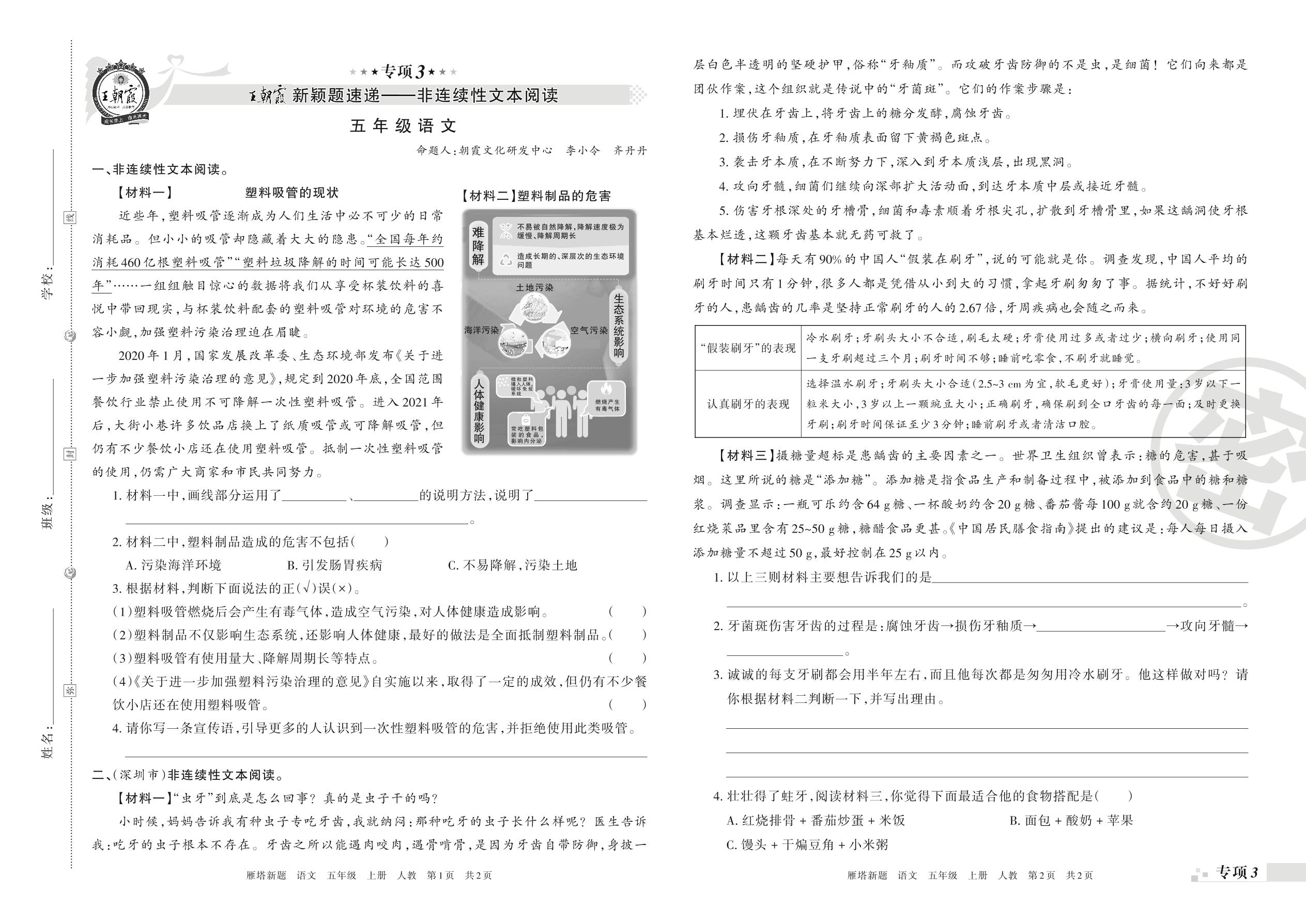 王朝霞期末专项卷——新颖题速递:非连续性文本阅读五年级上册语文(人教版)_R211223141812822【3】