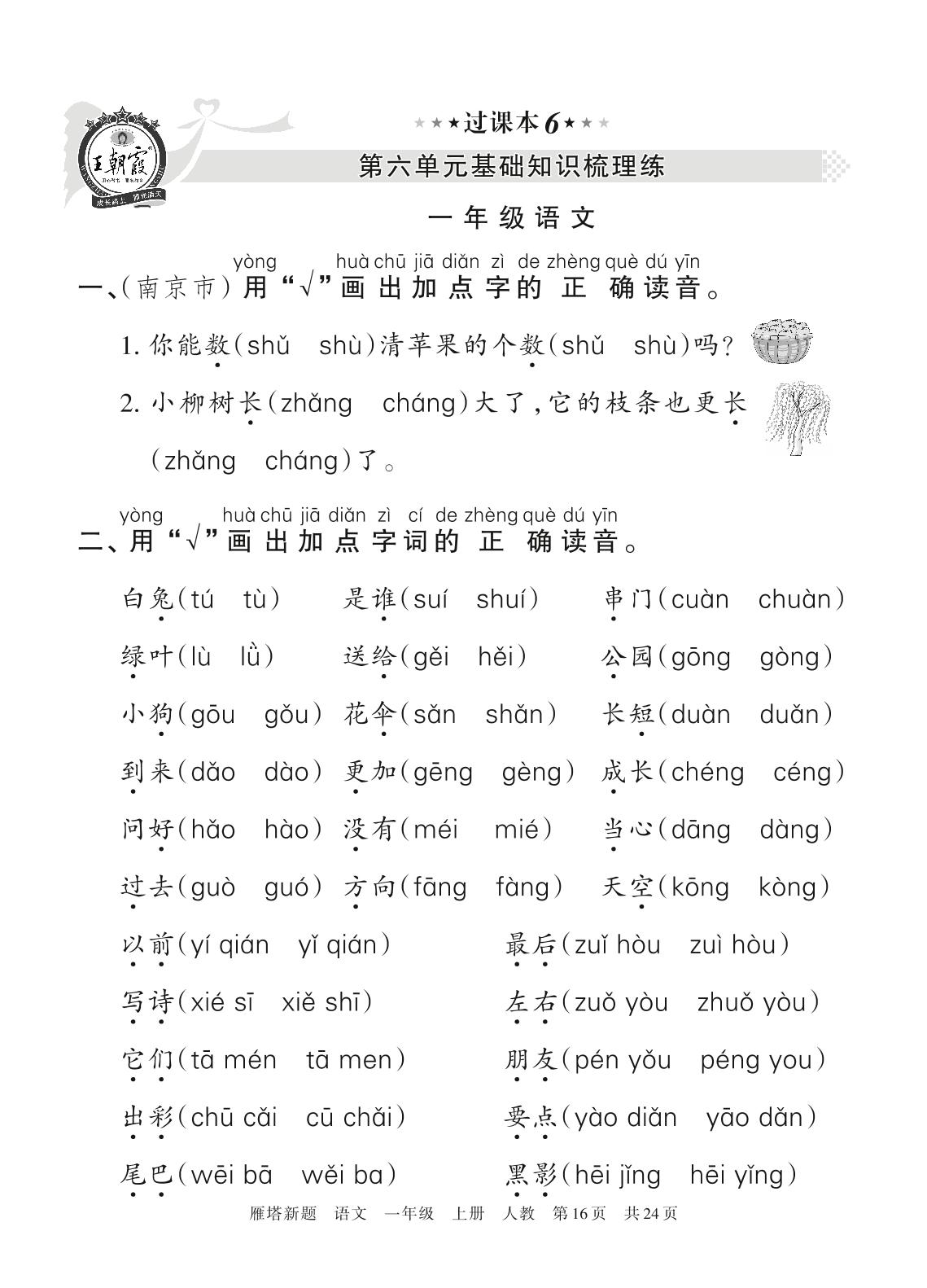 王朝霞期末过课本——第六单元基础知识梳理练一年级上册语文(人教版)_R211223142311032【6】