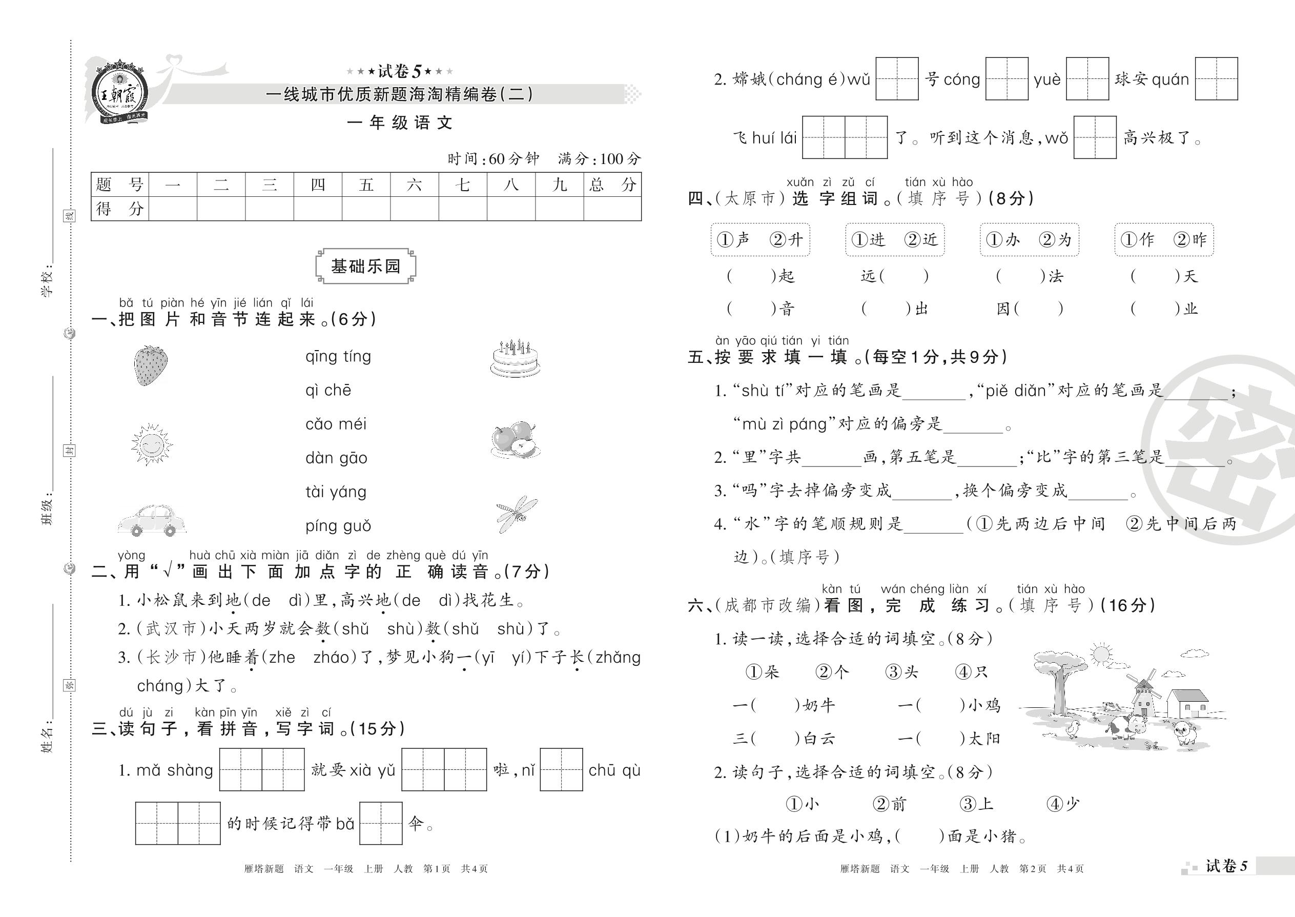 一线城市优质新题海淘精编卷(二)一年级上册语文(人教版)【5】
