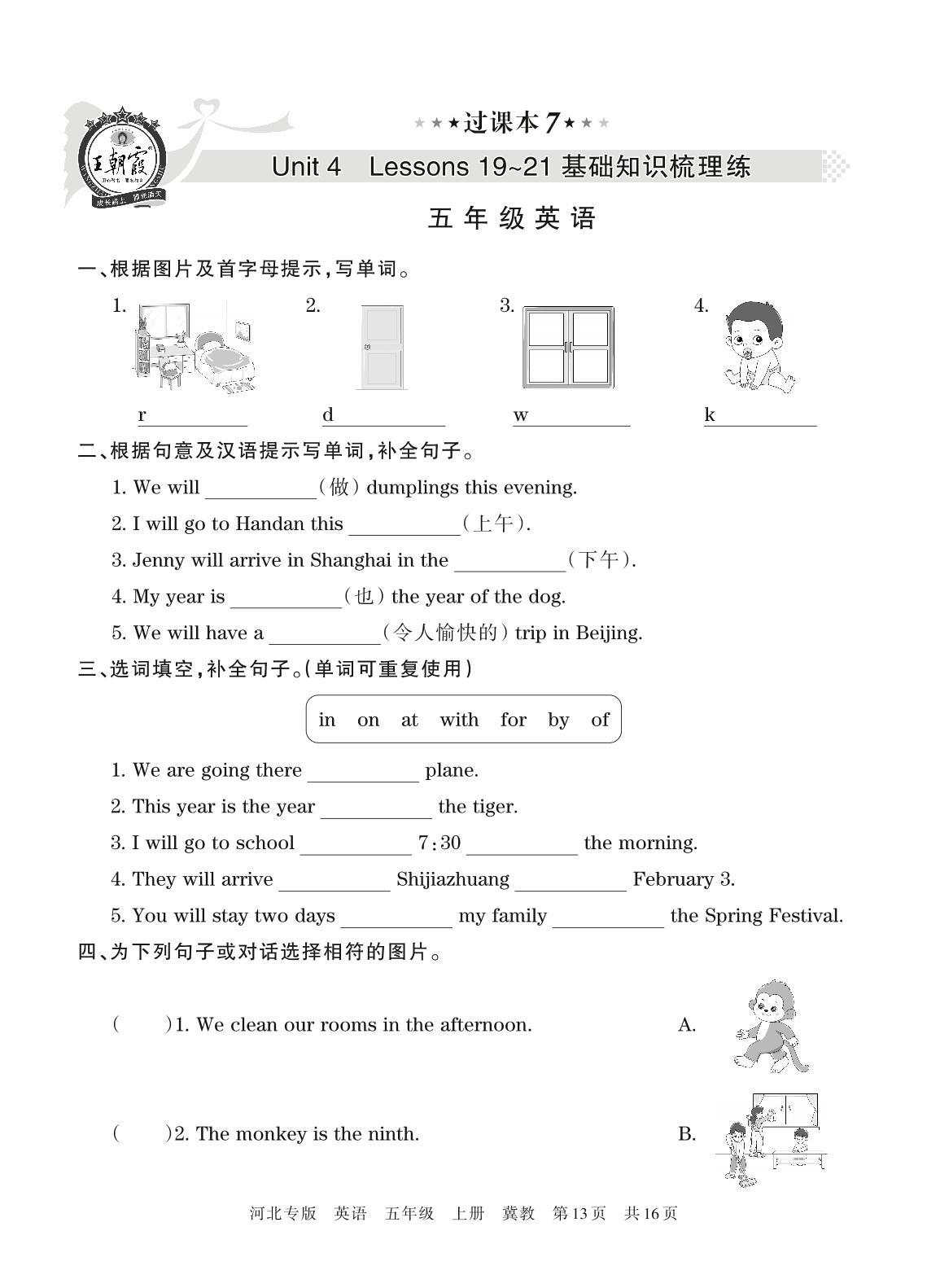 王朝霞期末过课本——Unit 4 Lessons 19~21 基础知识梳理练五年级上册英语(冀教版)【7】