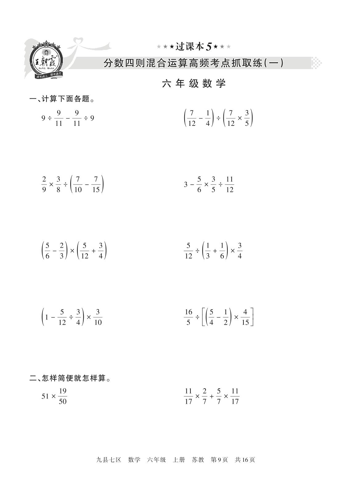 王朝霞期末过课本——分数四则混合运算高频考点抓取练(一)六年级上册数学(苏教版)_R211223142450364【5】