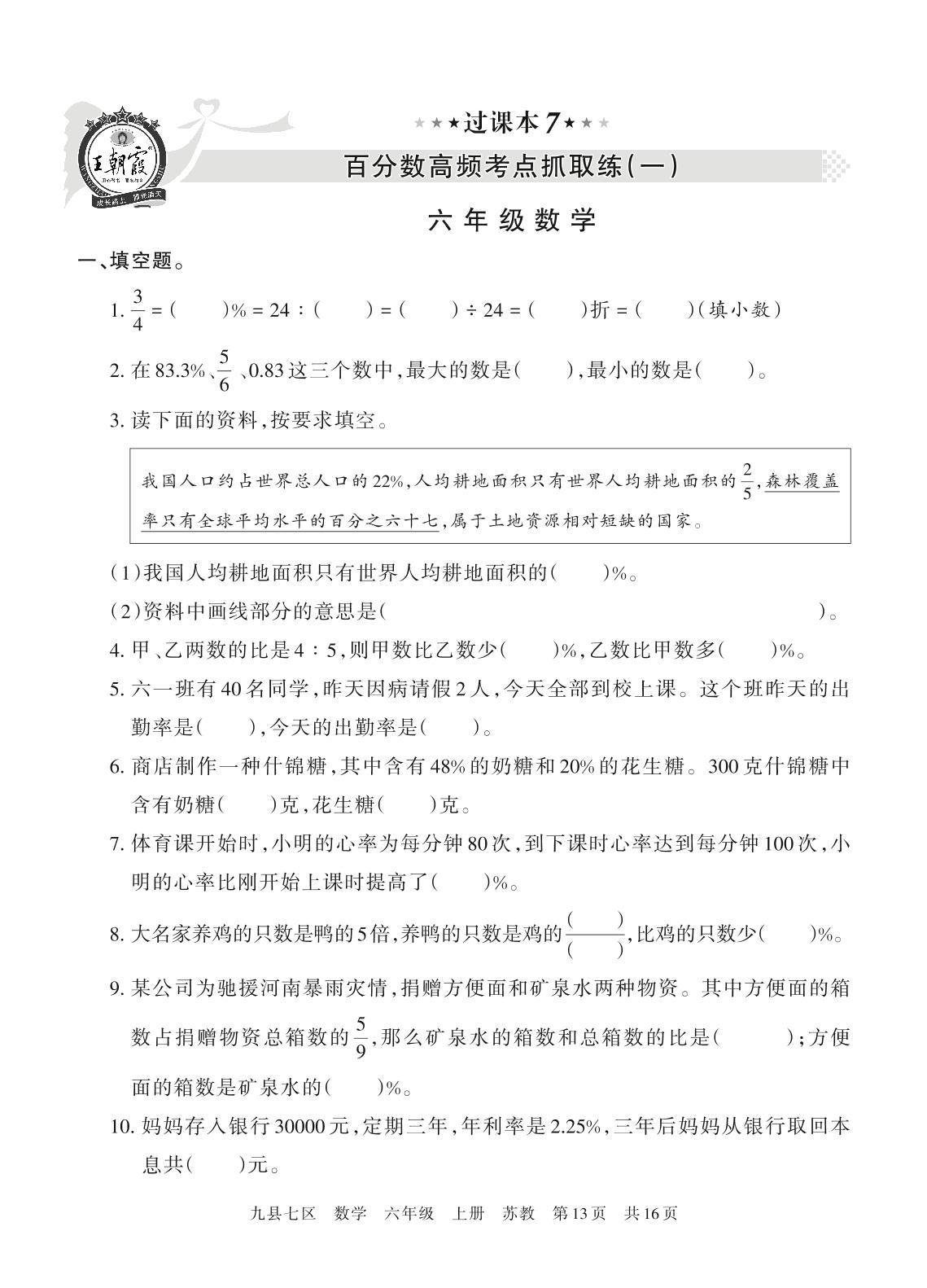 王朝霞期末过课本——百分数高频考点抓取练(一)六年级上册数学(苏教版)_R211223142450193【7】