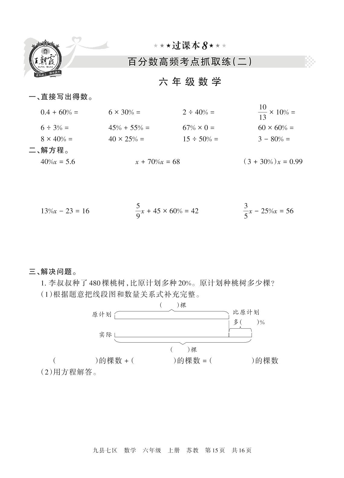 王朝霞期末过课本——百分数高频考点抓取练(二)六年级上册数学(苏教版)_R211223142450557【8】