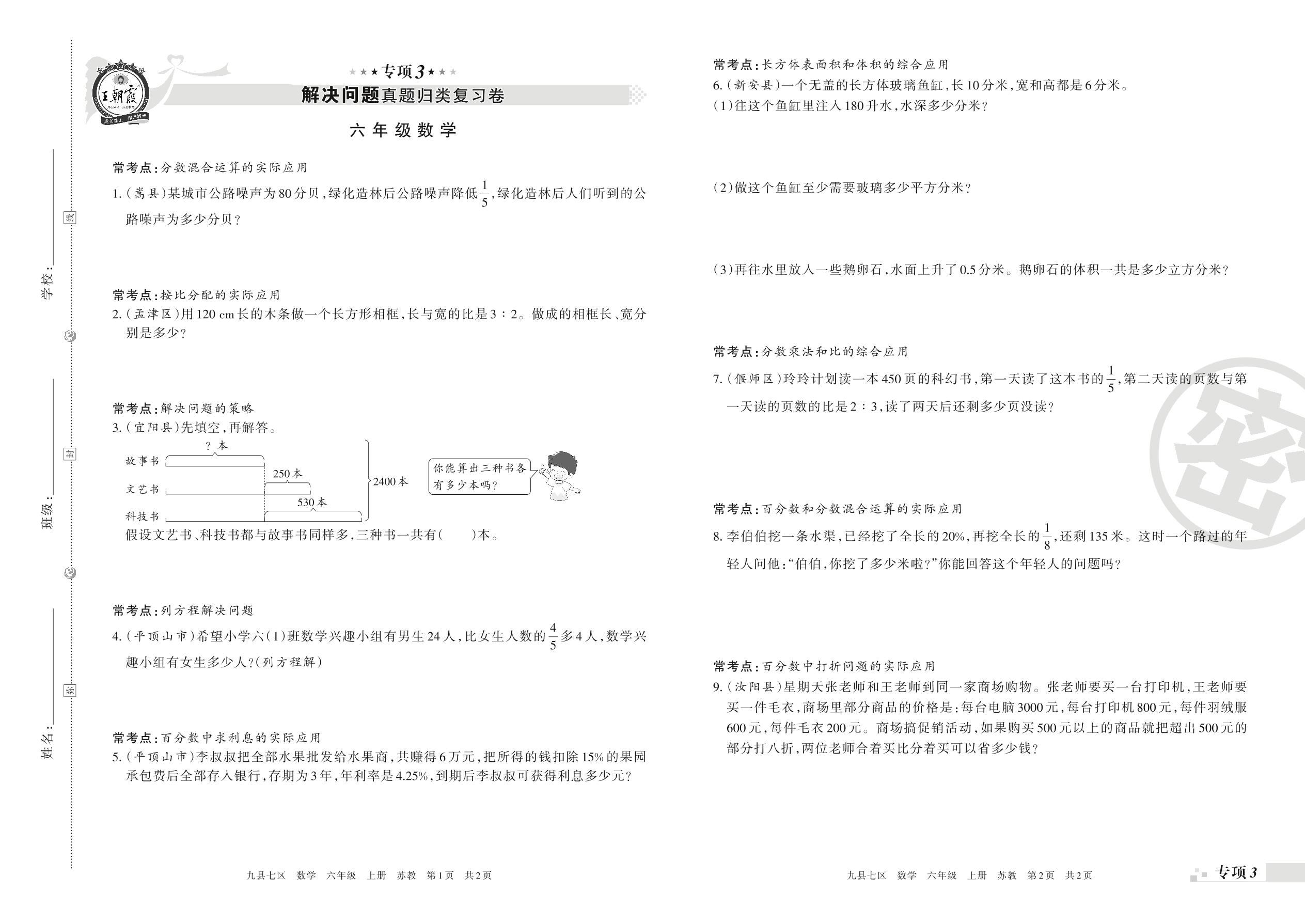 王朝霞期末专项卷——解决问题真题归类复习卷六年级上册数学(苏教版)【3】