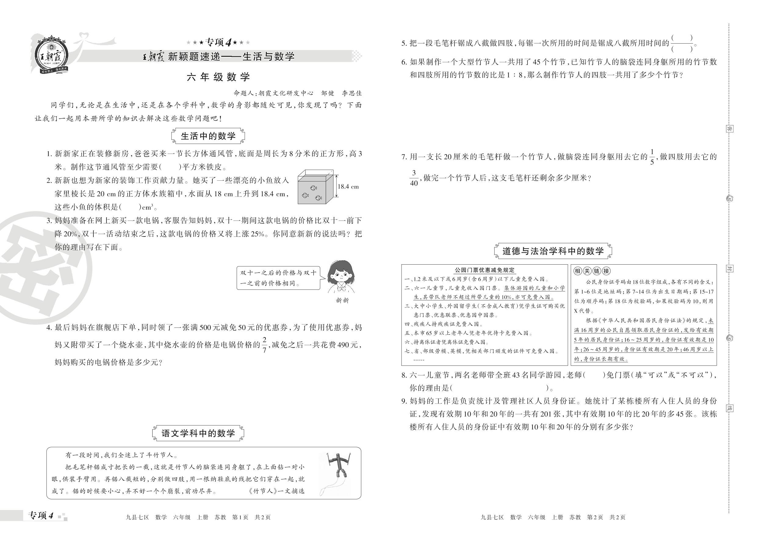 王朝霞期末专项卷——新颖题速递:生活与数学六年级上册数学(苏教版)_R211223142450041【4】