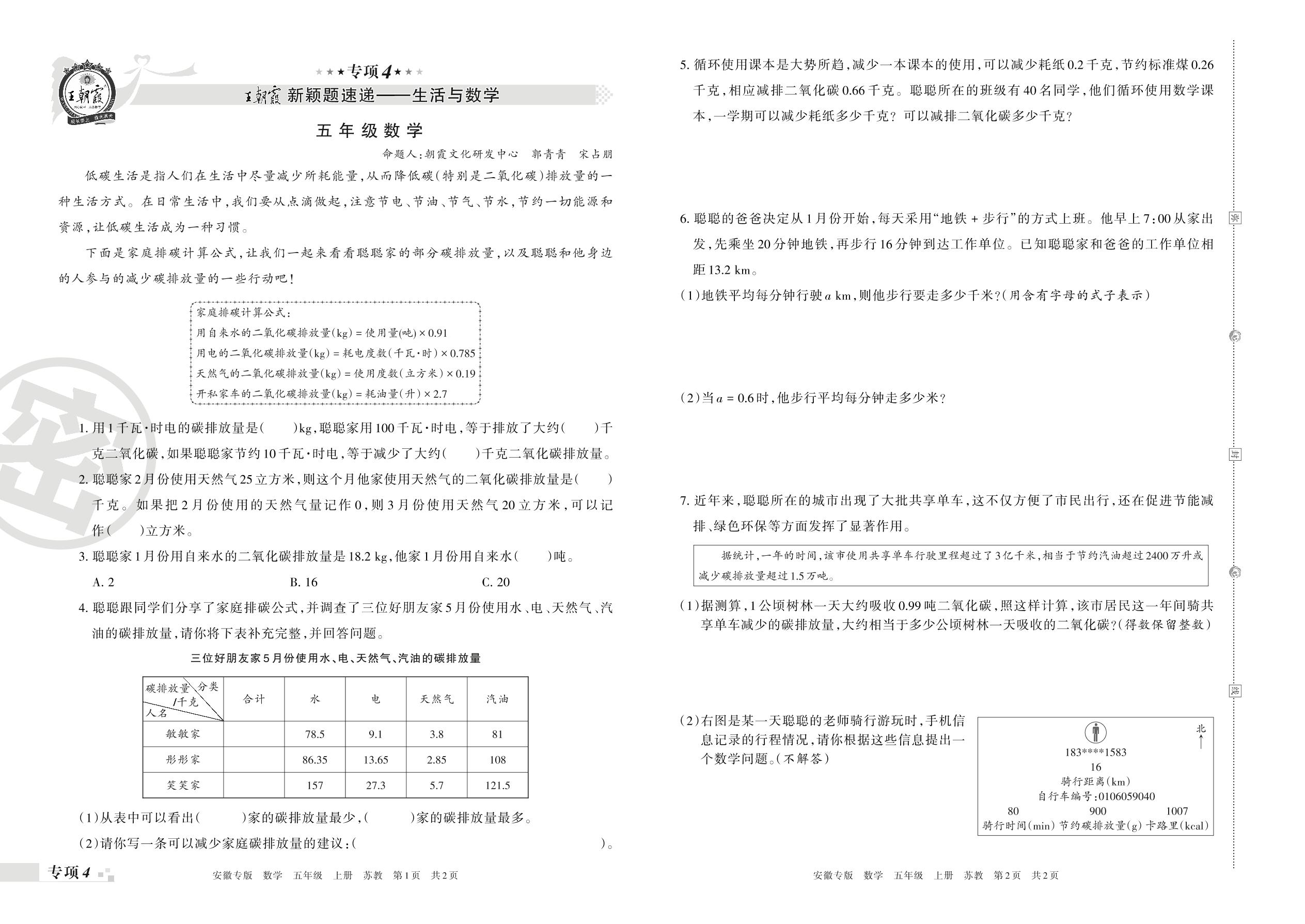 王朝霞期末专项卷——新颖题速递:生活与数学五年级上册数学(苏教版)【4】
